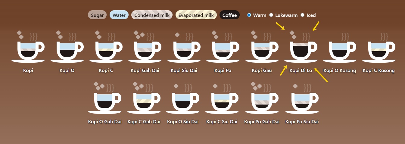 取自kopi guide 有关传统咖啡店,各种咖啡的不同之处: