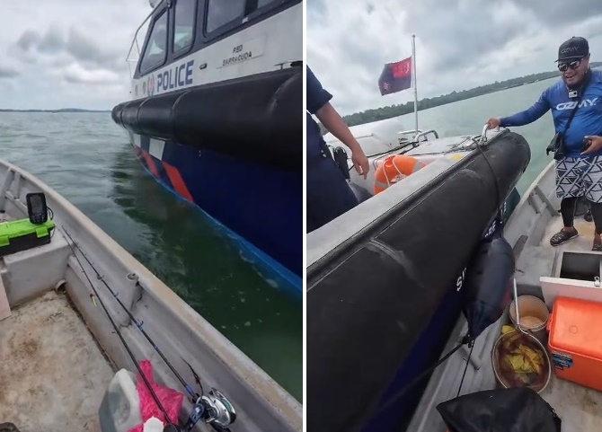 新加坡海岸卫队查询身份、完成核查后,便允许事主和同伴继续钓鱼。