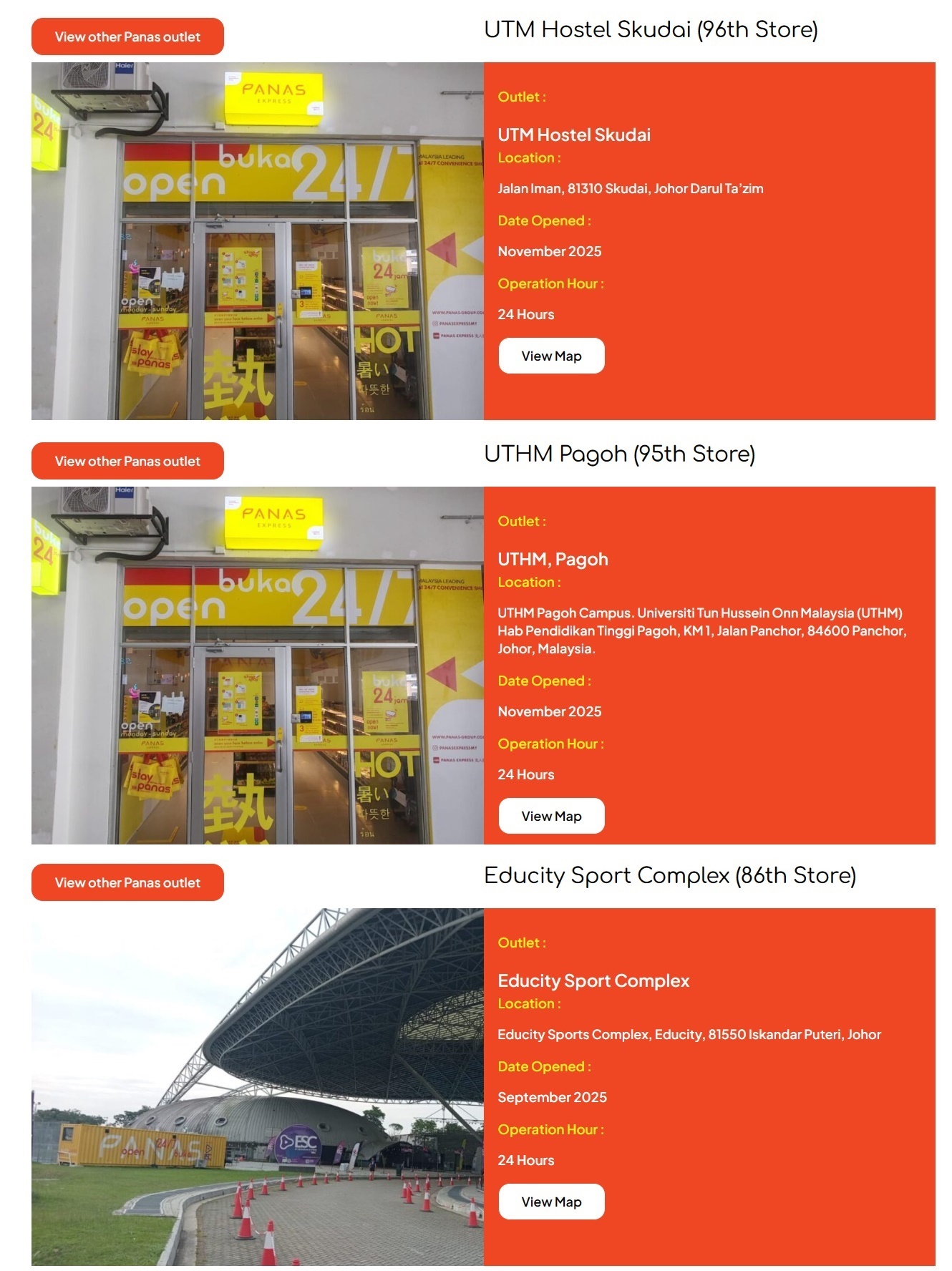 目前,Panas Express在新山、昔加末、麻坡都设有无人便利店,主要坐落在大学校园和医院。