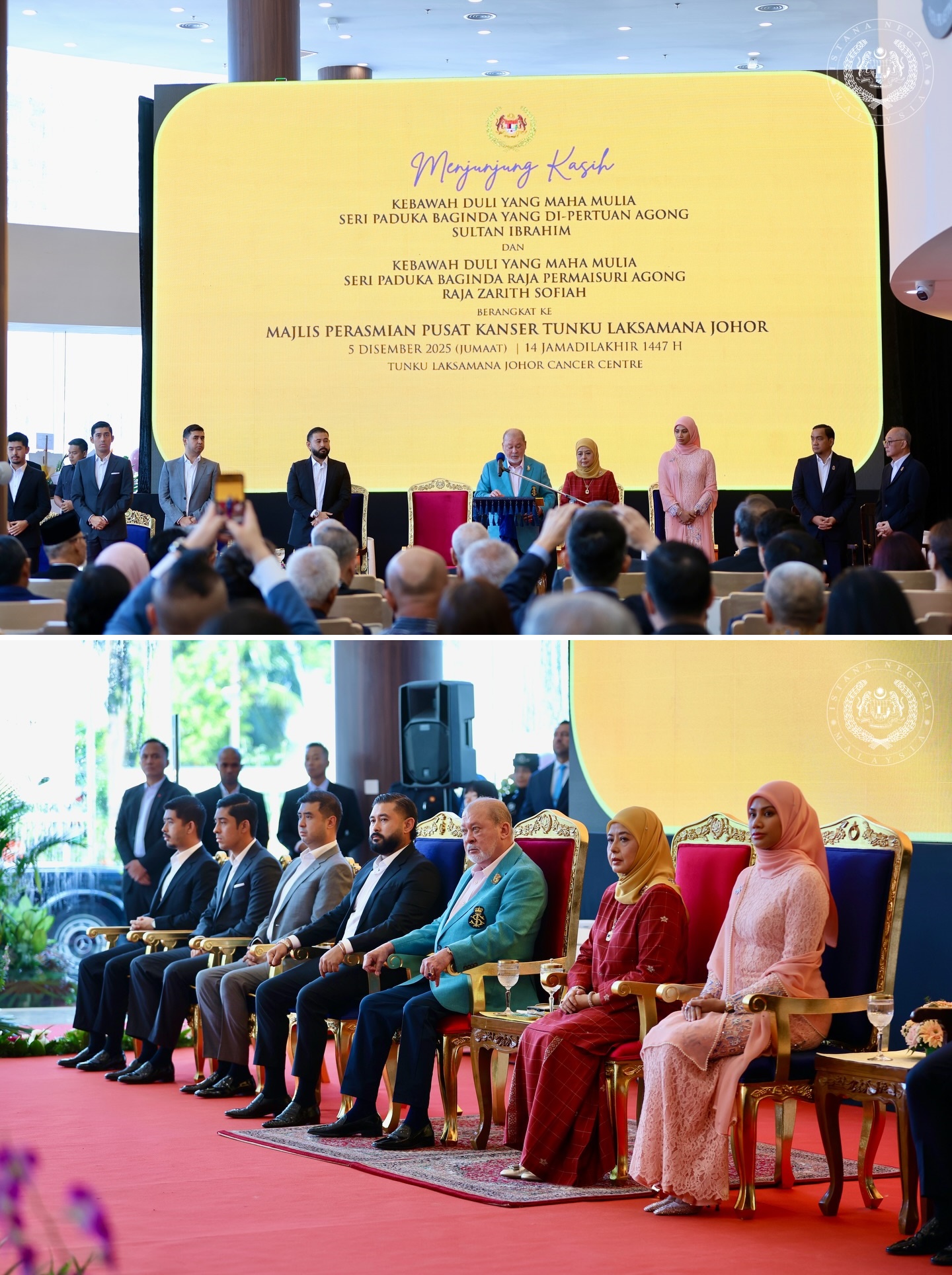 今日(12月5日)柔佛三王子癌症中心开幕,陛下于早上8时57分抵步,并由元首后、柔佛摄政王东姑依斯迈和摄政王妃卡丽达随行陪同。