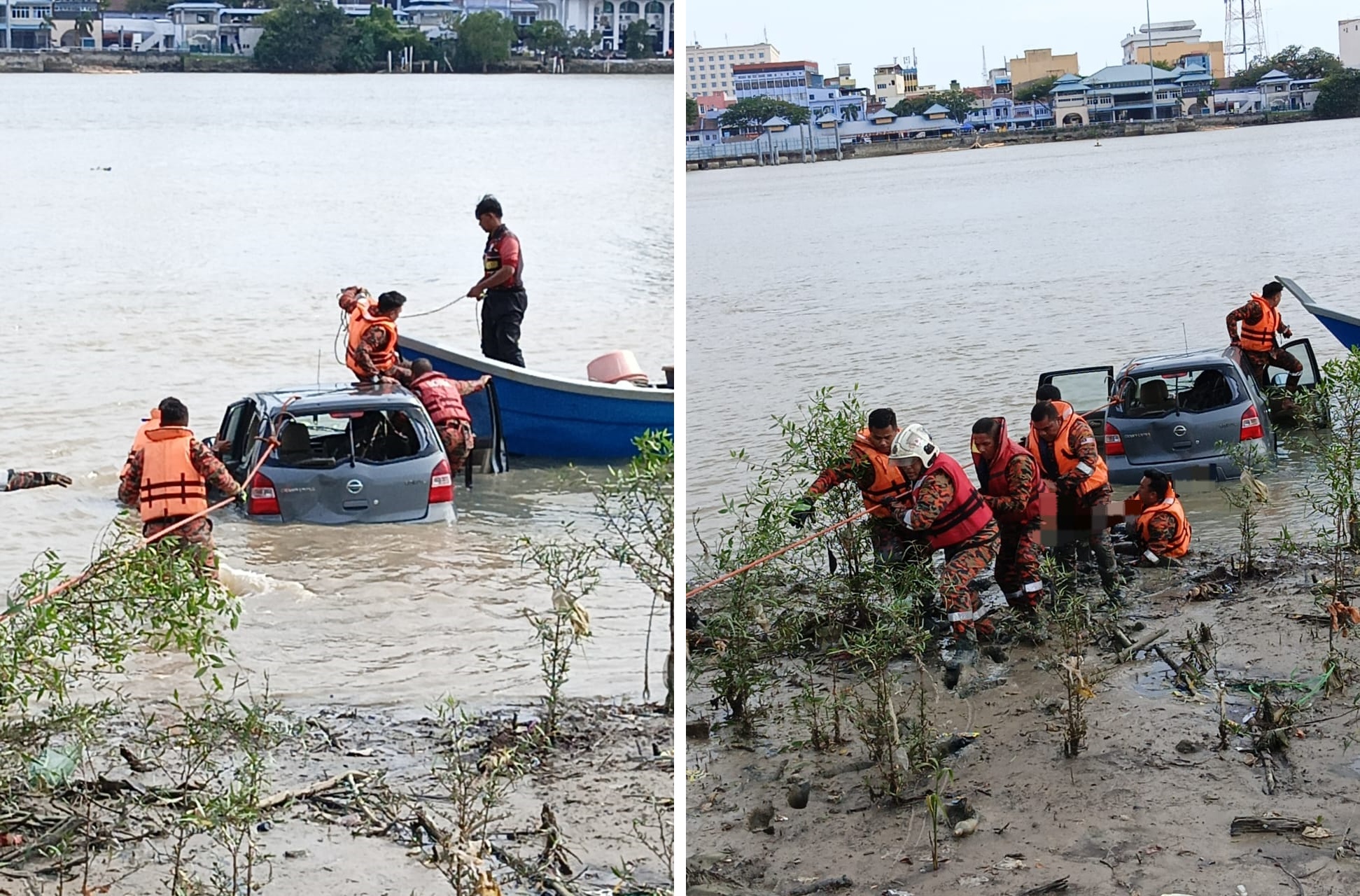 昨日下午3时许,在Tanjung Agas公园发生轿车坠河事件。