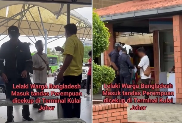 (古来10日讯)孟加拉籍男子在古来巴士总站,疑误进女厕所,被民众围堵后报警处理。