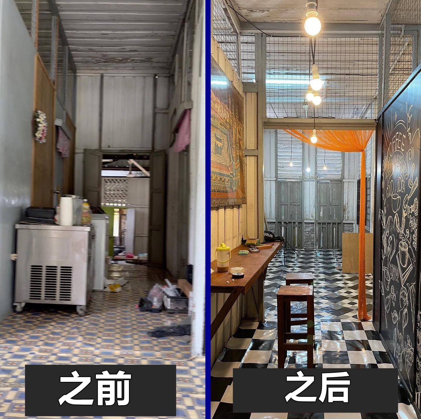从店家面子书页,可看见老房子的“原貌”,以及改造后的焕然一新,除了露天桌位,屋内也有一些似小吧台的空间。