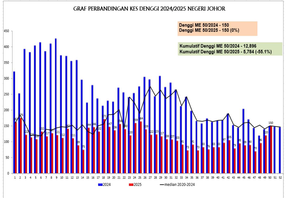 他也提醒,第50个病理学周,却与去年同一时期相同一样,有150宗骨痛热症案例,这显示了在过去一个星期,柔佛内的骨痛热症的案例增加了不少。
