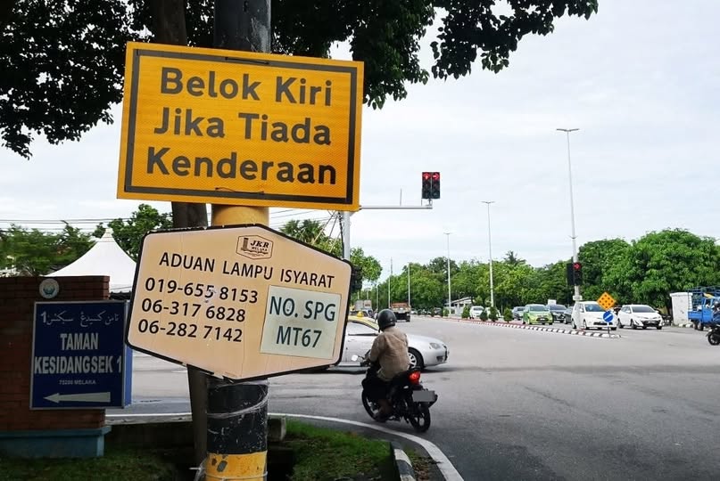 (麻坡21日讯)发生交通事故难判定过失,在警方建议下,路口“没车可左转”告示牌拆了!