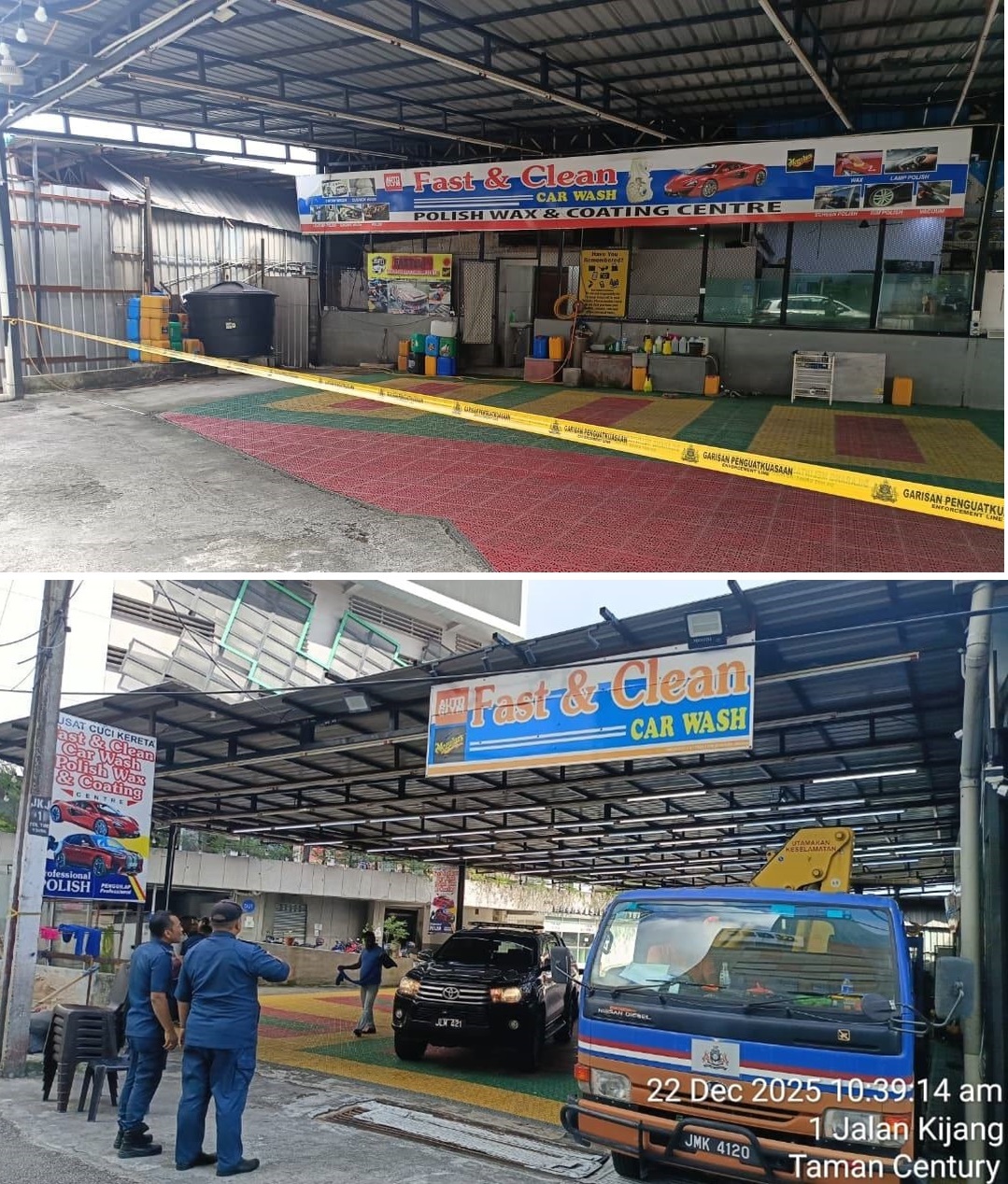 ─市政局于2025年12月21日上门检查时,由于业者未能出示有效的最新营业执照,位于Kijang路 5号门牌的洗车中心被充公。