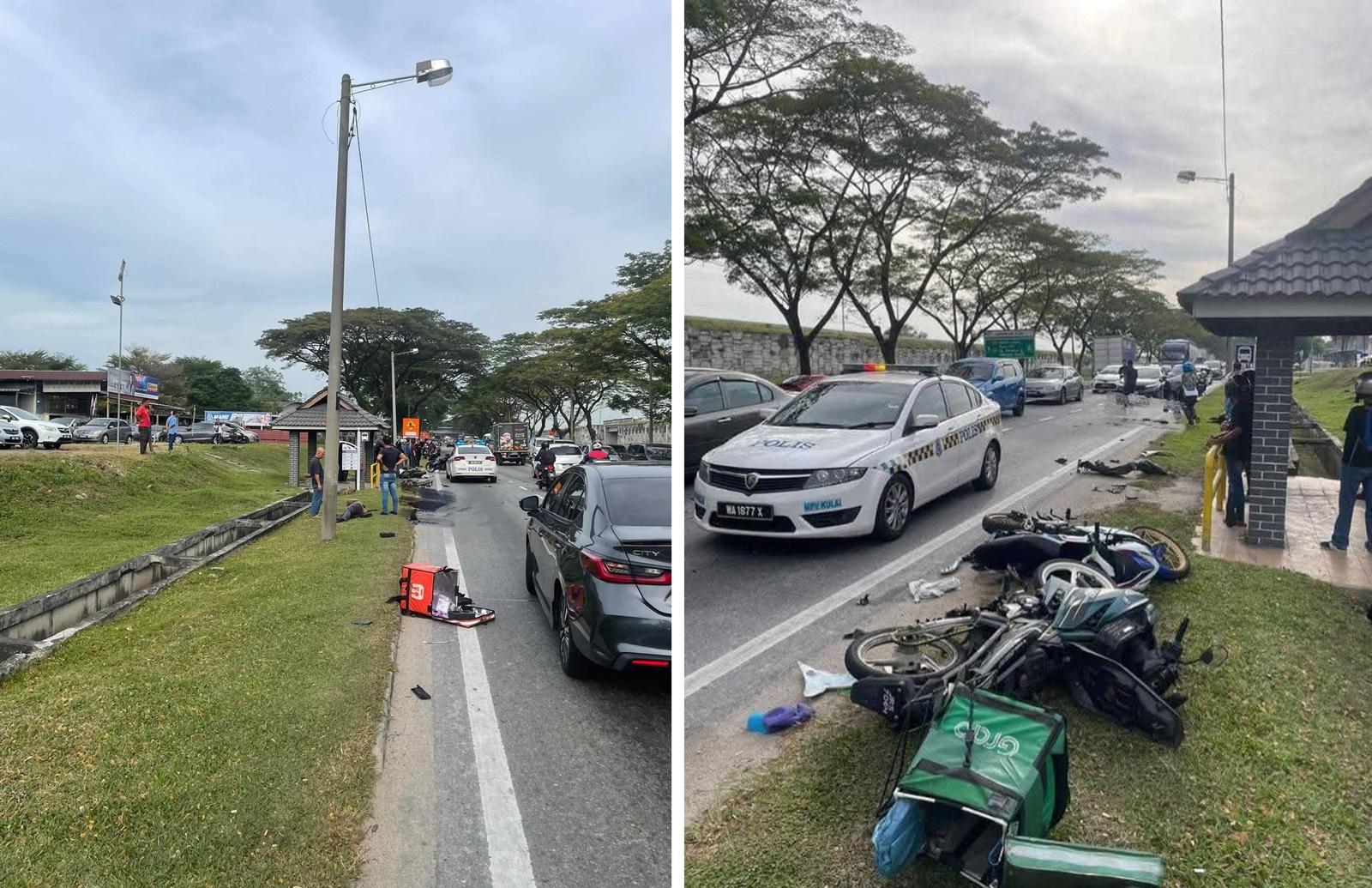 他说,初步调查,事故发生时,夫妇骑着摩哆,准备为电子商务平台送货,岂知摩哆失控撞上对面的 Yamaha Y15ZR 摩哆和轿车。