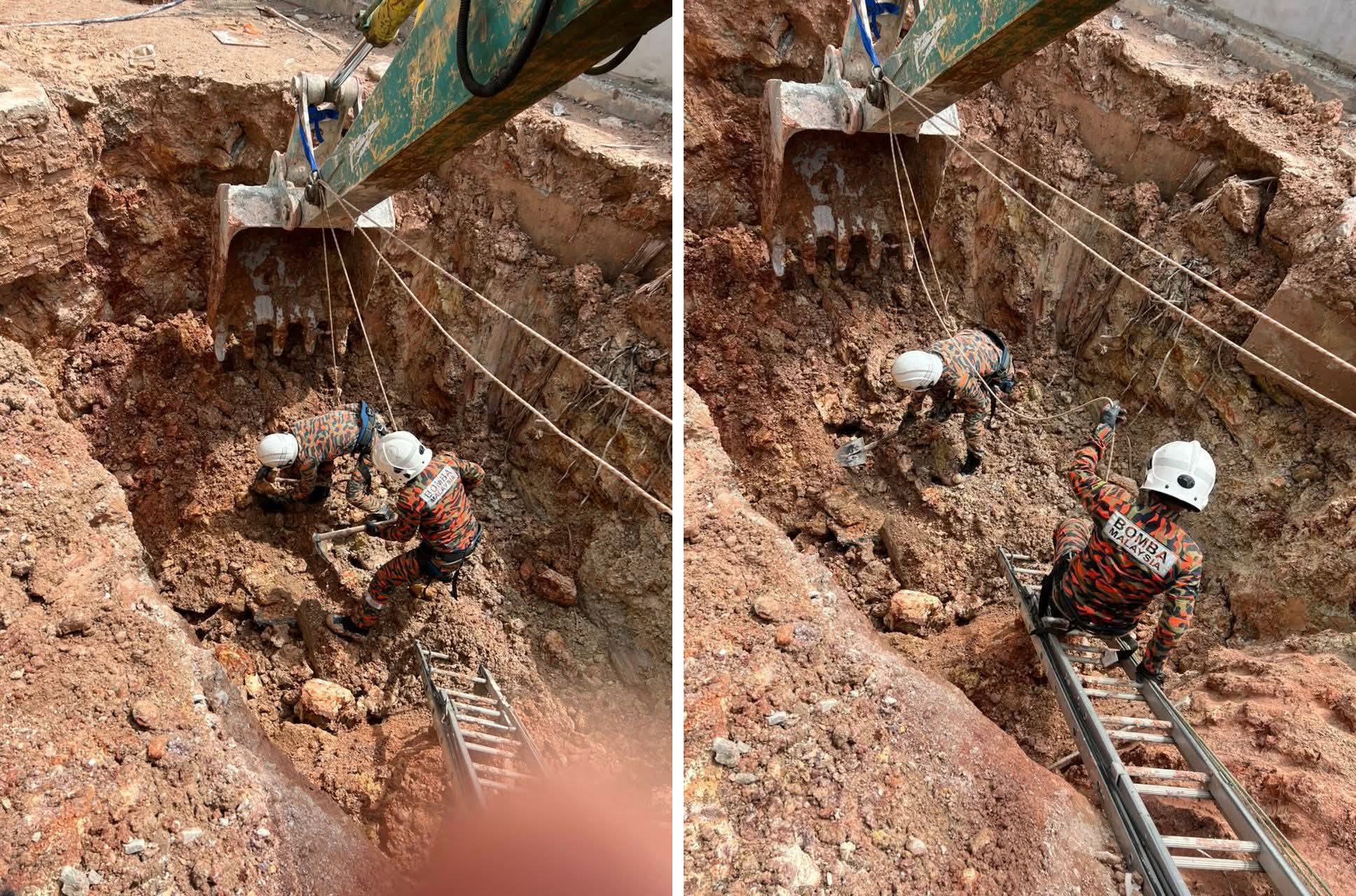 他透露,32岁的工人成功逃脱,而另一名年长的工人发现时,埋在约三公尺深的土里,并由消拯将死者从土里移出。