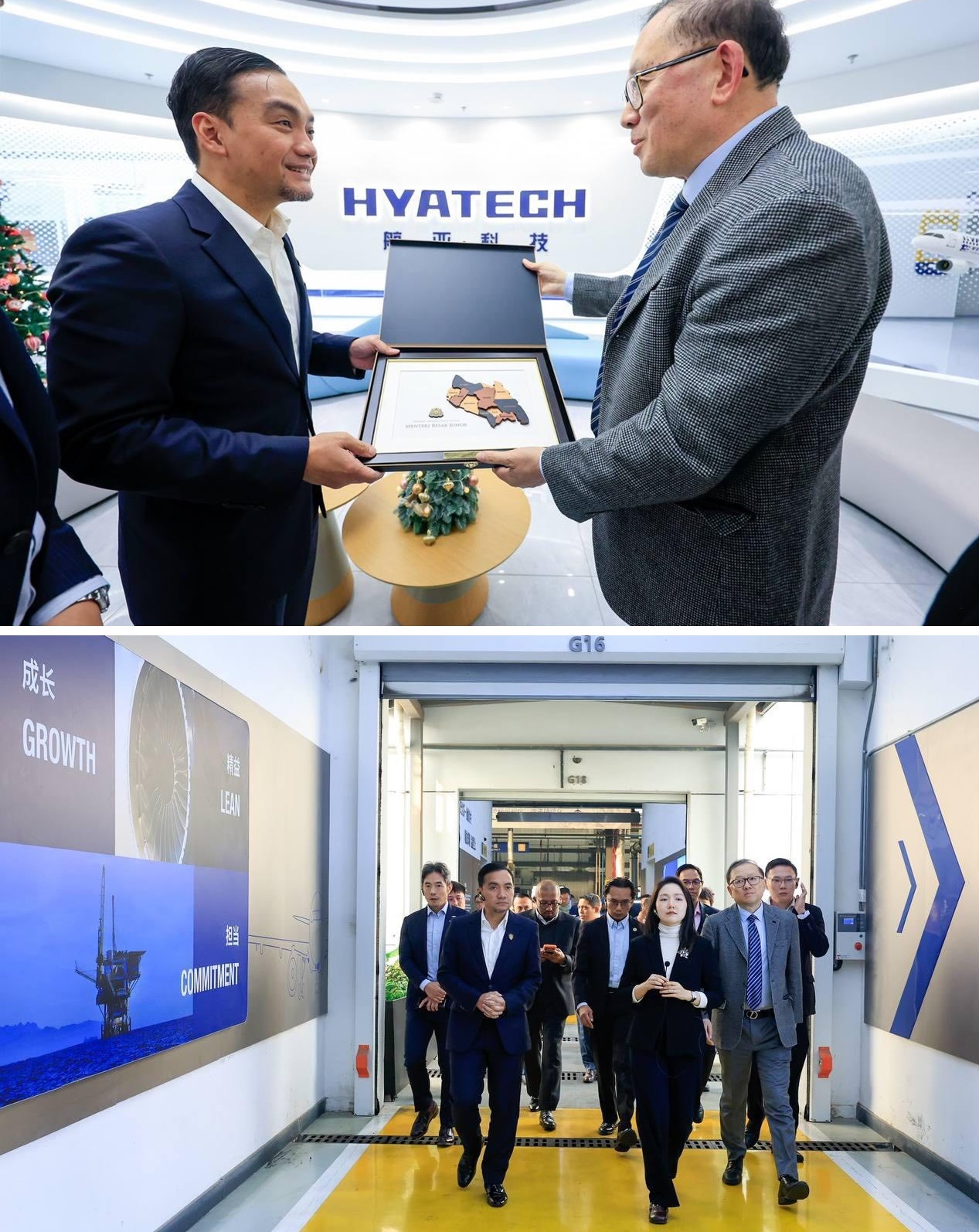 (新山2日讯)柔佛政府代表团访问中国江苏无锡的航亚科技Hyatech,柔佛更获选为Hyatech海外扩展的第一站,计划投资数亿令吉项目,专注于高附加值航空航天零部件的生产。