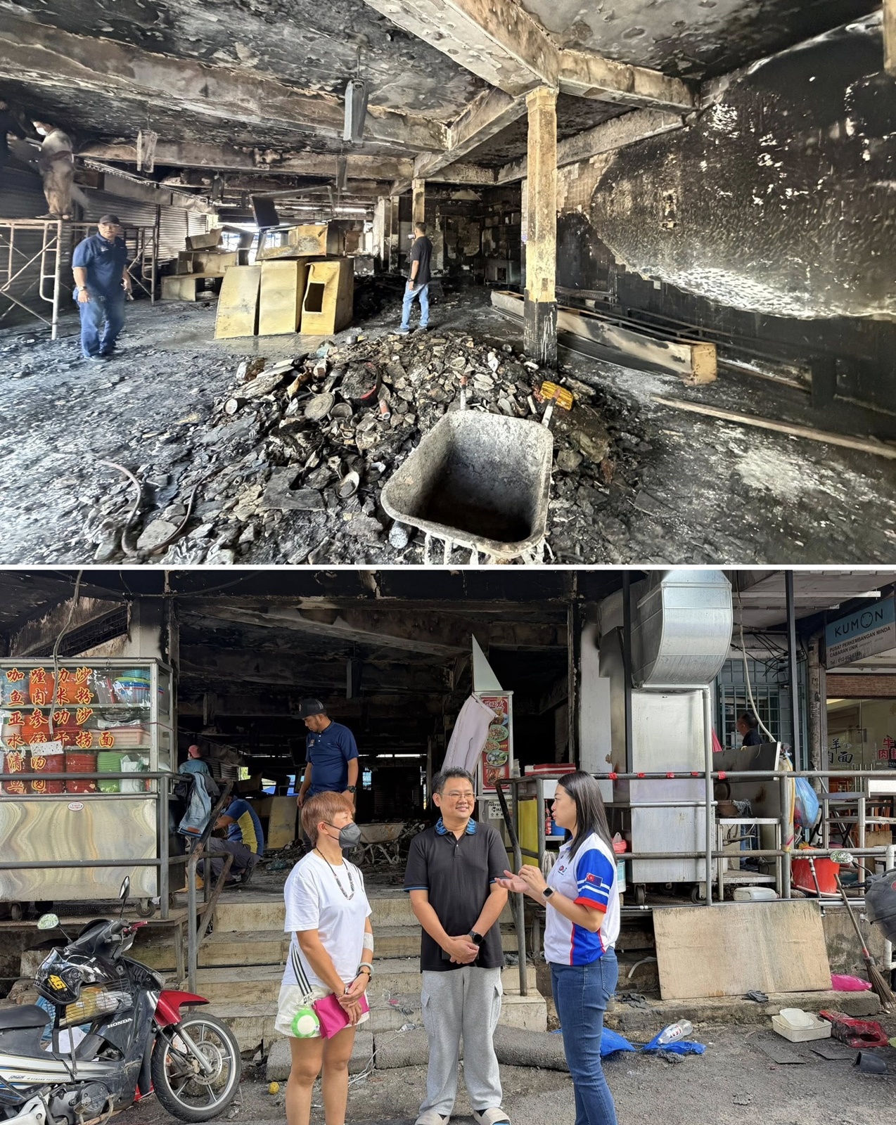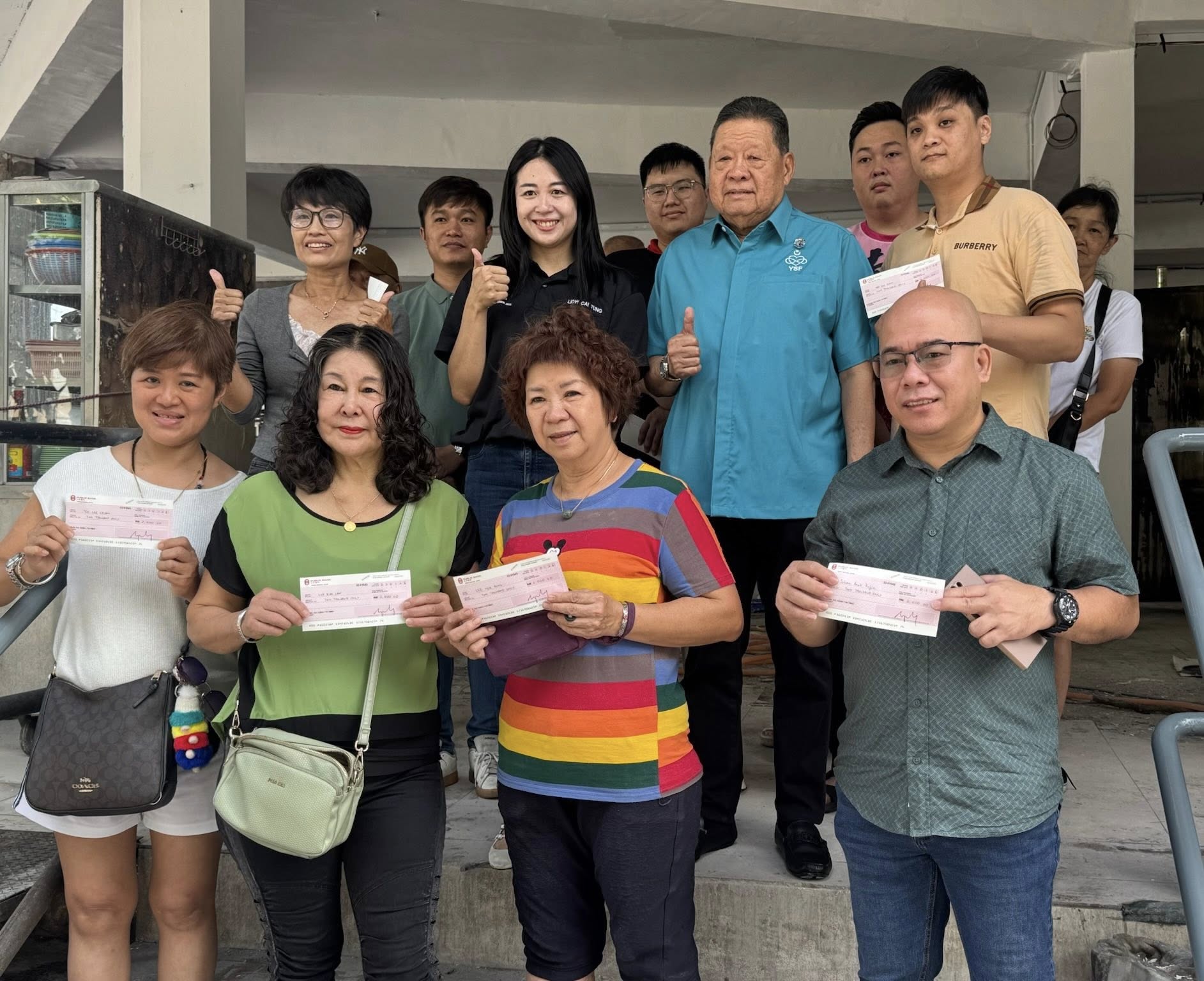 她感谢苏丹后法蒂玛基金会主席华人尊长拿督黄匡顺,第一时间为受影响摊贩伸出援手,为每个摊主提供2000令吉的援助金,减轻小贩们的负担。