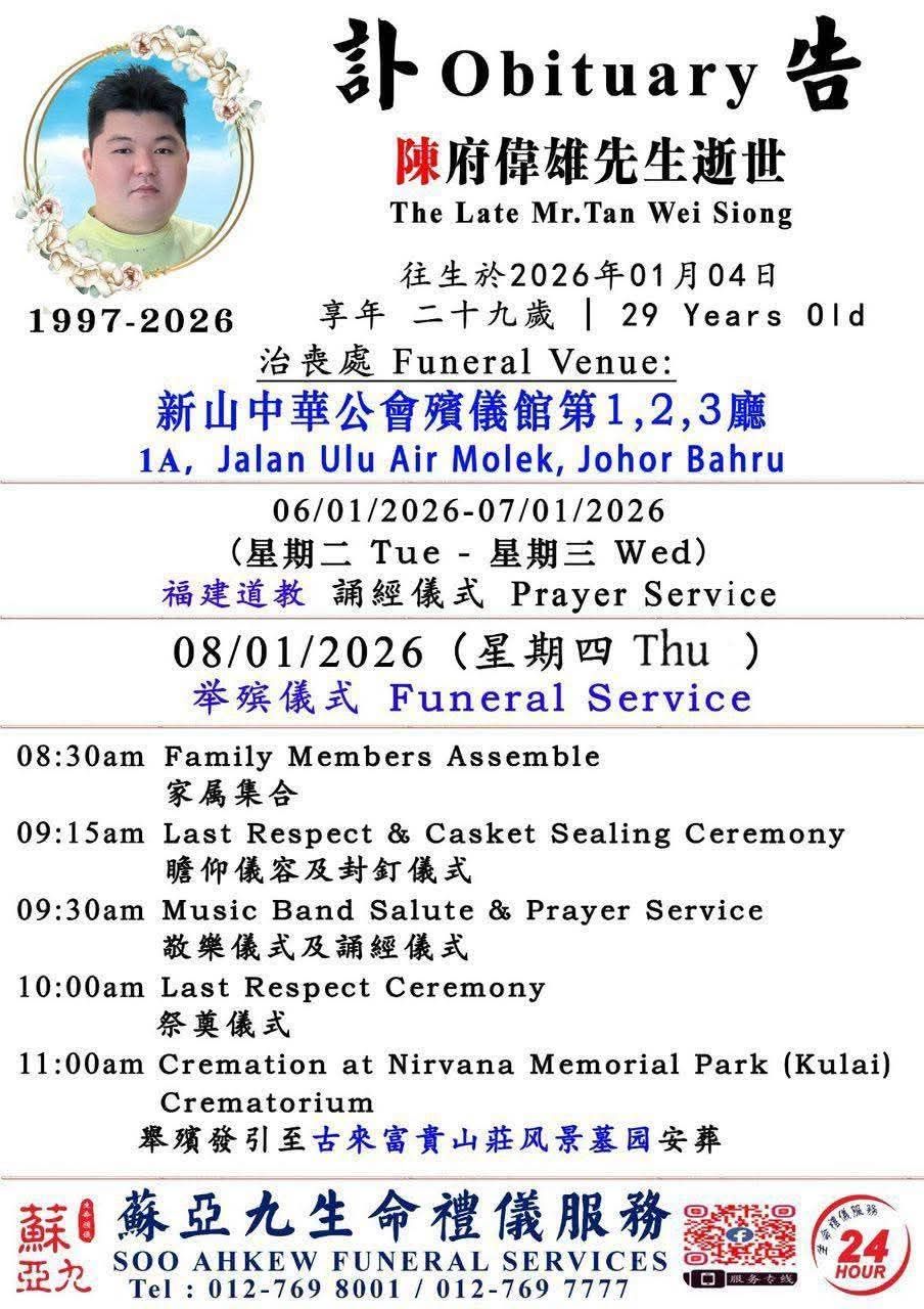 任何有关此车祸信息者,可拨打07-386 4222联系警方。