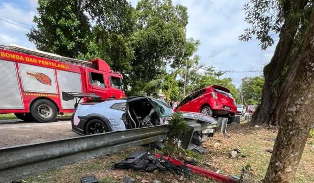 警方初步调查,跑车失控驶入对面车道,撞上Picanto轿车和两辆Axia轿车。