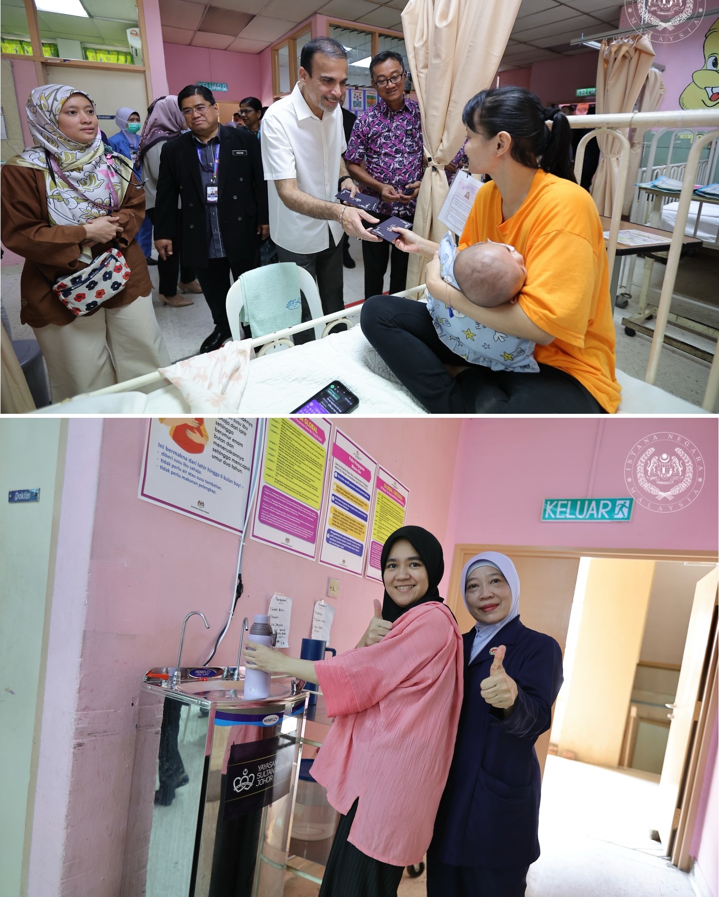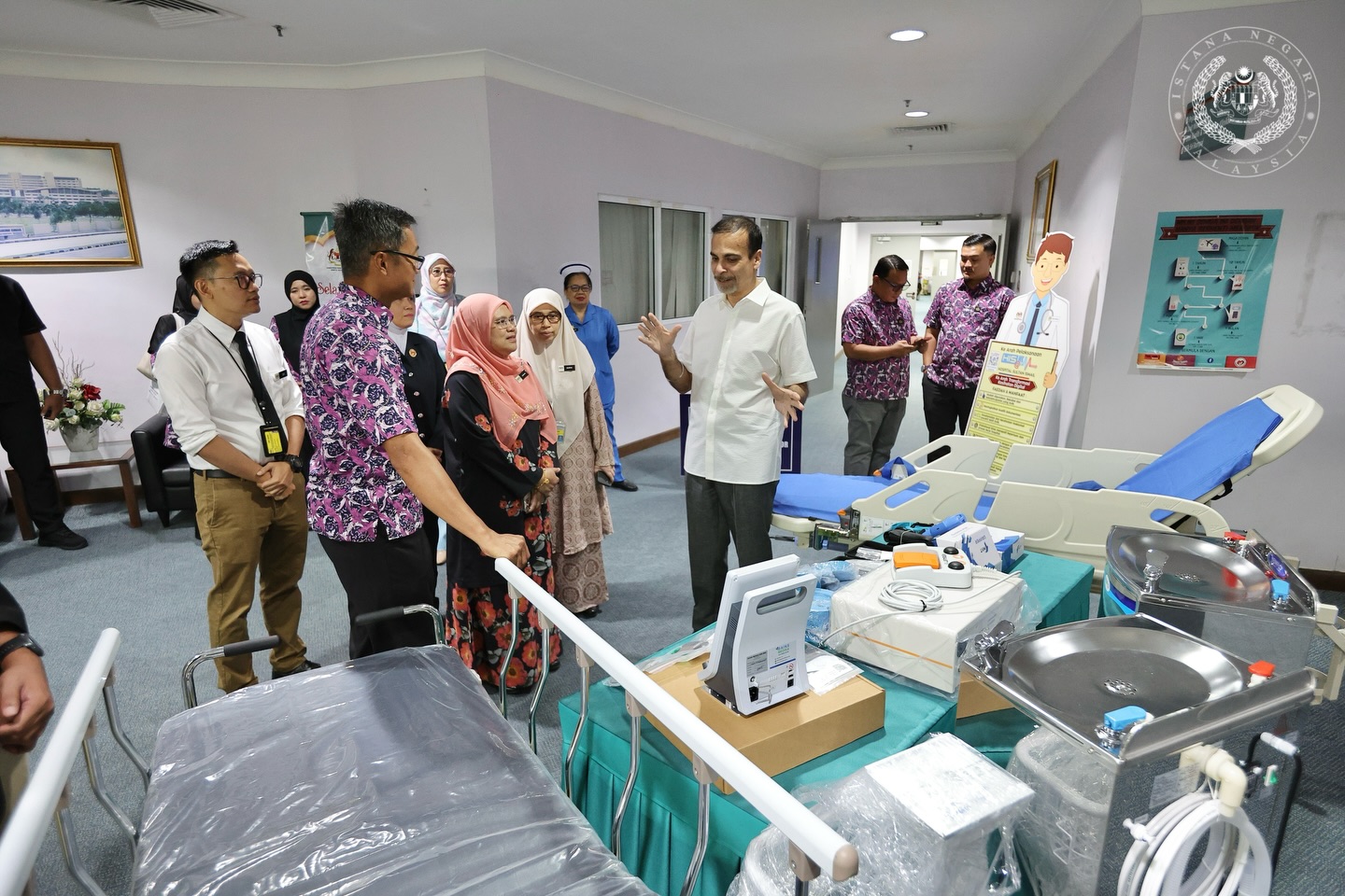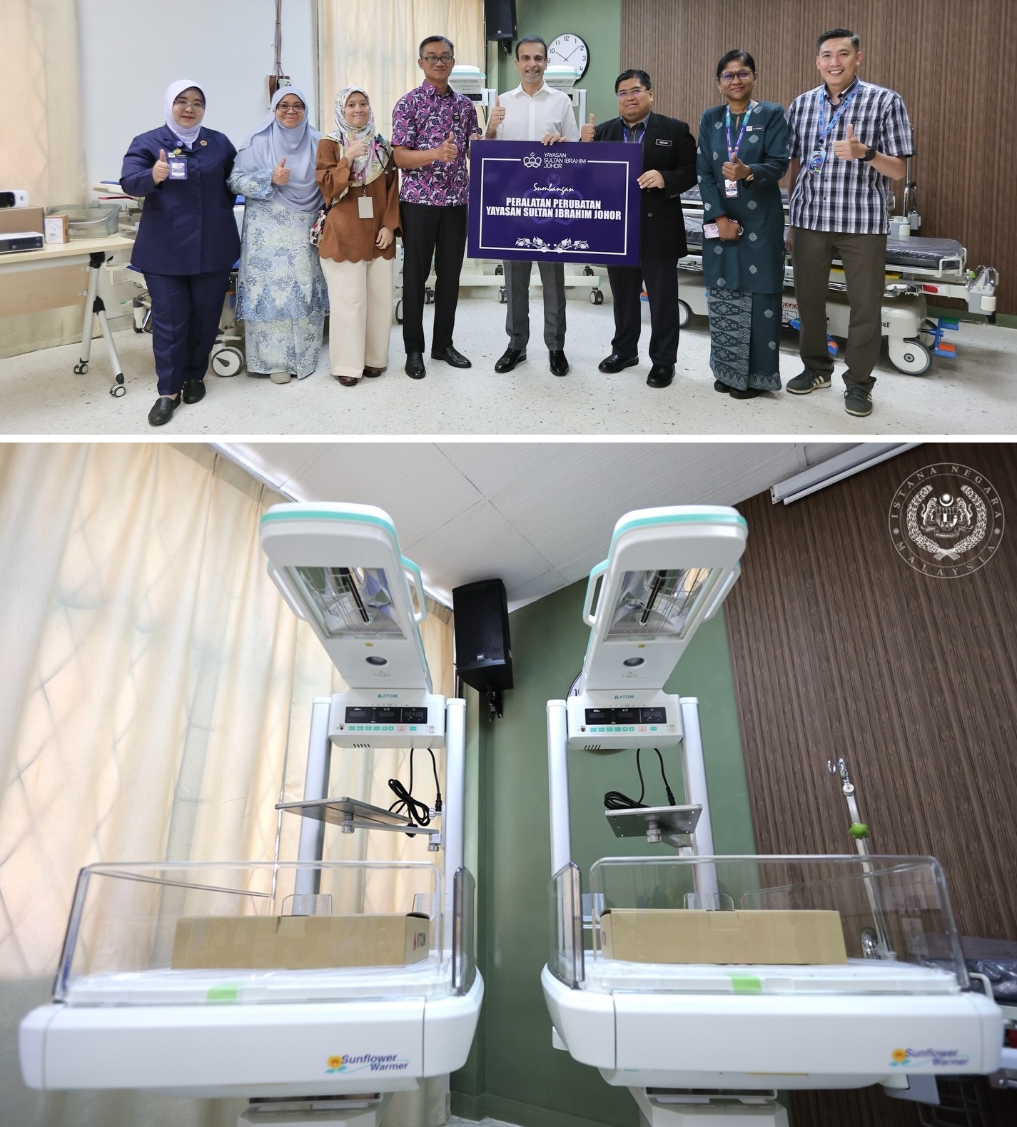 捐赠仪式由基金会信托人拿督阿文德吉星,首先在新山中央医院儿科系大厅进行,移交给院长Mohd Nizam Subahir。出席者还有基金会总执行长Mohd Anizam Jamian。