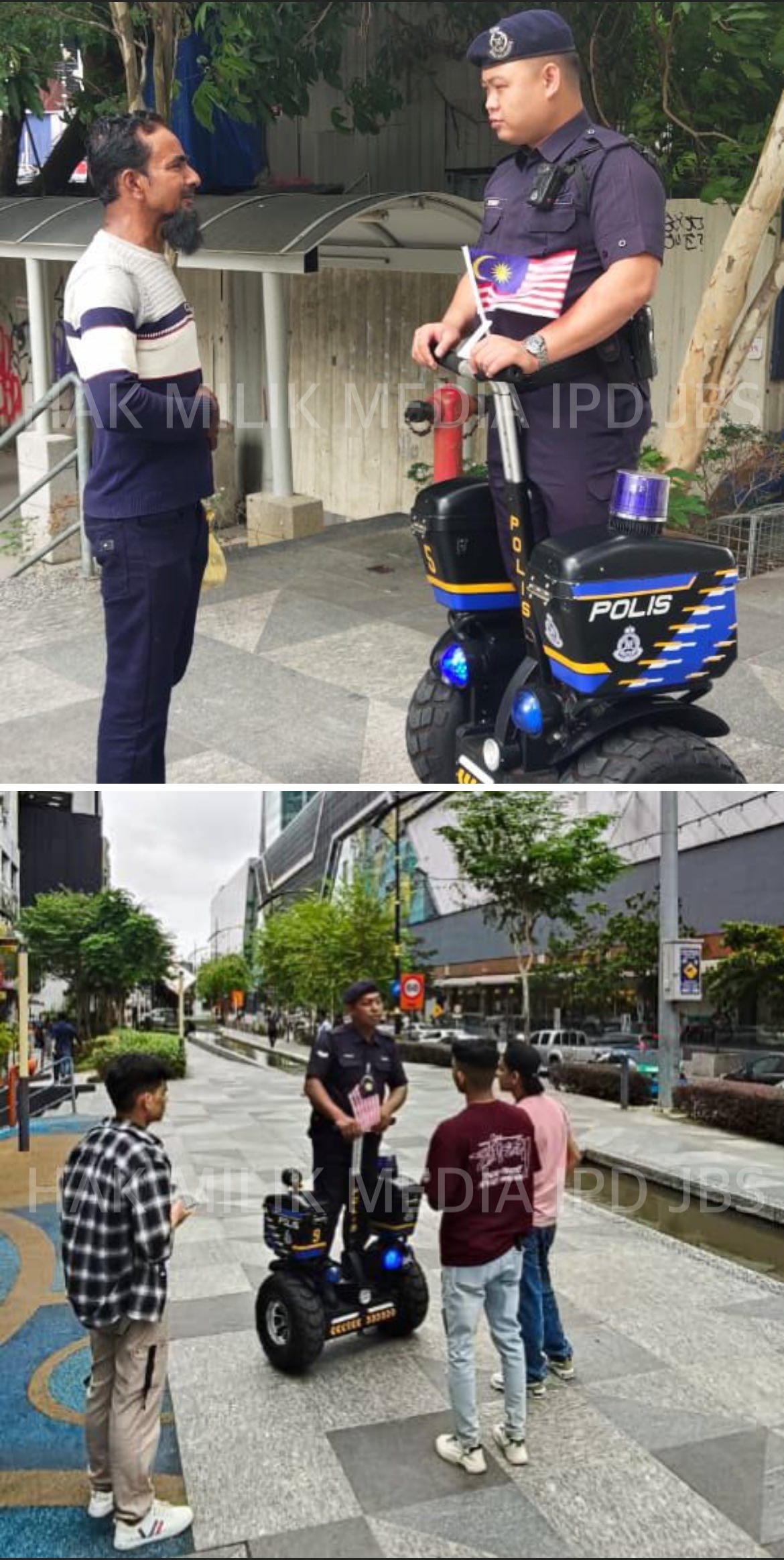 (新山7日讯)新山警察使用“电动平衡车”,在购物商场等人潮区域巡逻,防范罪案,确保公众安全。