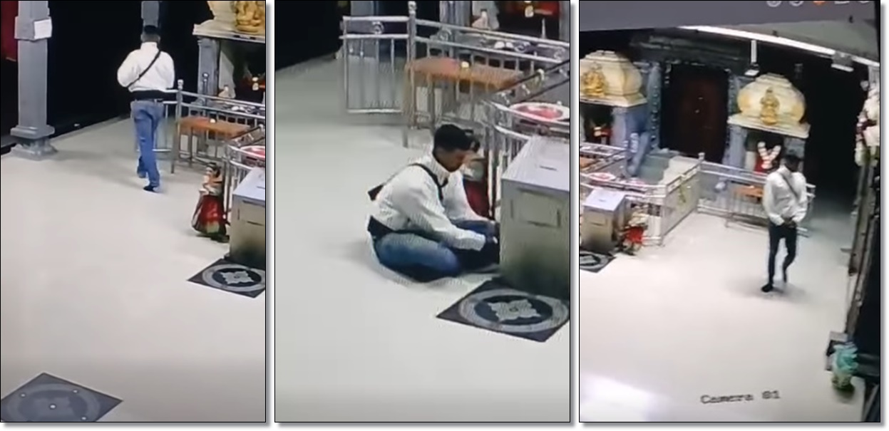 网上流传视频,关于一名男子偷走士乃一间兴都庙,偷走功德箱里金钱的过程。