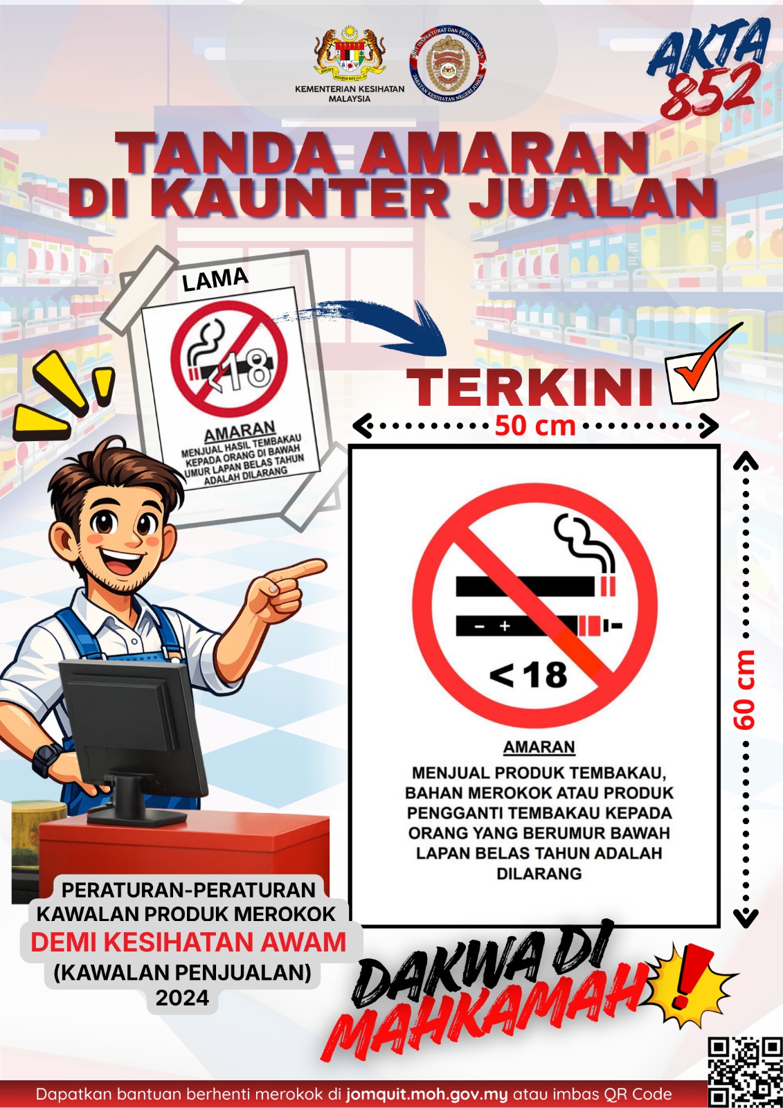 另外,柔佛卫生局也提醒,在相同法令下,禁止向18岁以下人士出售烟草制品的告示,也须使用新的版本,而且必须在销售柜台张贴。