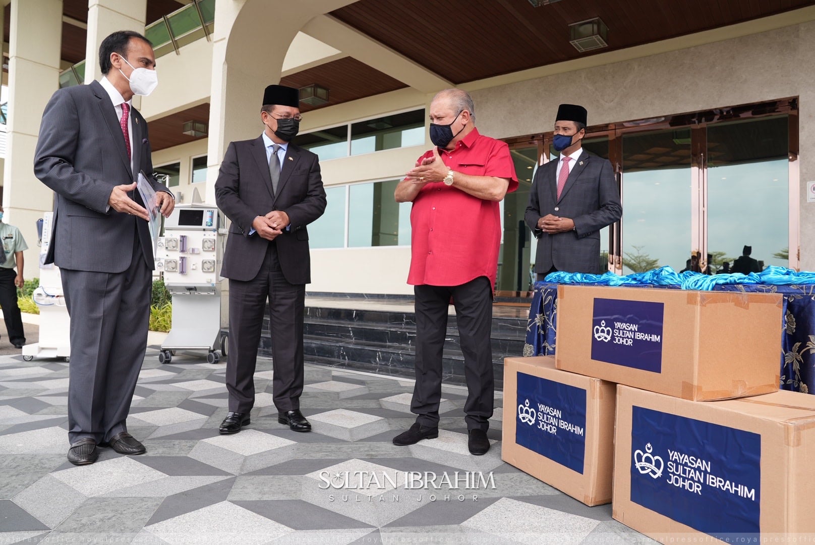 新加坡淡马锡基金会经由柔佛苏丹依布拉欣基金会,将医疗用品移交给柔佛各单位。移交仪式今日在巴西柏兰宜王宫举行,由柔佛苏丹亲自主持。