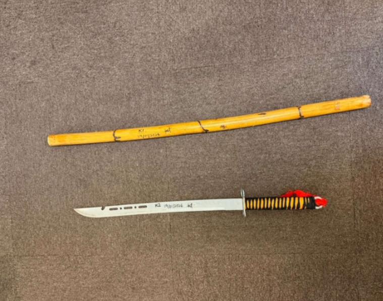 同时,警方也起获了殴斗中使用的武器,即1条藤棍和一把剑