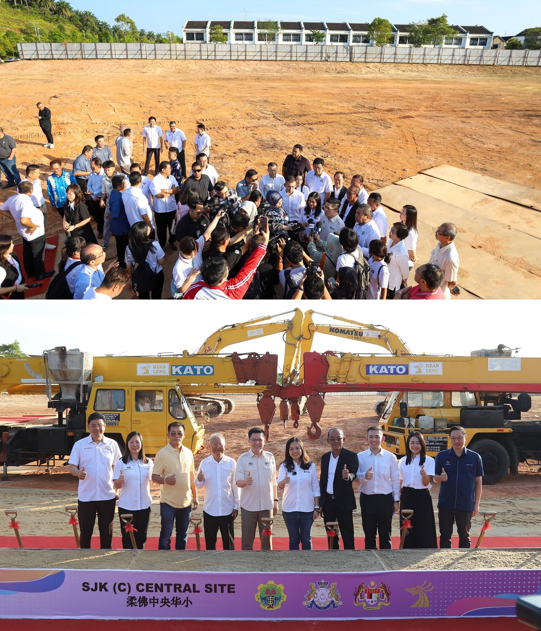 他说,新山华社今天迎来双喜临门,去年6月获得迁校批准的中央华小今天正式动土、郭鹤尧华小建校准证也正式到手,两所华小放眼在2027年下半年,正式开课启用。