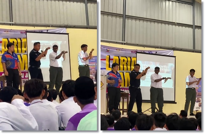(新山2日讯)警界里的“显眼包”来了!警察叔叔Uncle Mil到校园讲座,又唱又跳农历新年歌《HORSEH》,惹得满堂笑声,更获赞体现各族和谐与团结。