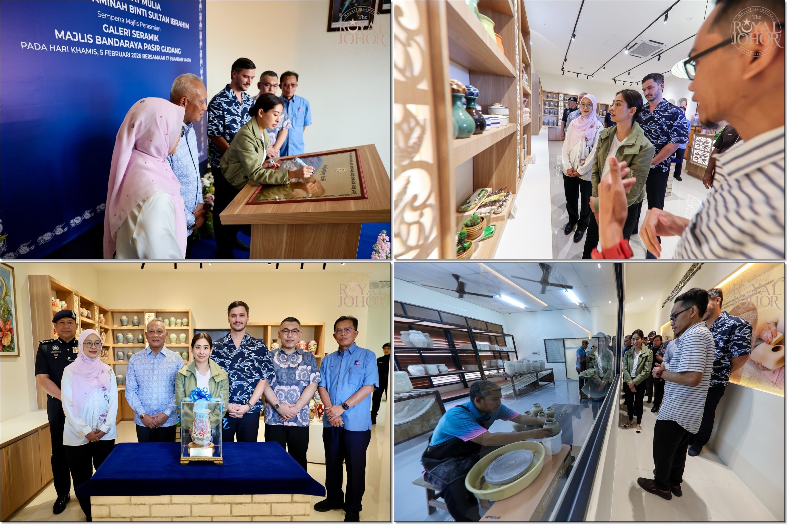 柔佛公主东姑敦阿米娜与荷兰籍夫婿拿督丹尼尔为落成纪念牌匾签上名字后,也参观了博物馆的展览空间,并观看了陶瓷制作演示。