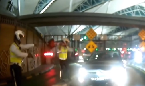 日前,网上流传视频,在新山苏丹依斯干达大厦(BSI),即柔佛长堤的新山关卡内,有一辆加坡注册轿车逆行,警员和志愿警卫便向前阻。
