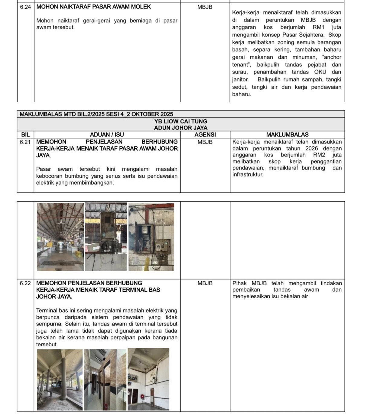 柔佛再也州议员廖彩彤今日发文告指出,日前出席新山县行动理事会议,新山市长亲自回复,有关她对柔佛再也巴刹和百合花园巴刹的询问。