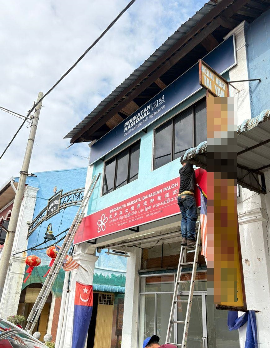 其中,去年从马华退党后,加入土团党的林耀进和、黄玉盈、汤良福,也上载了服务中心“红色招牌”拆下的照片。