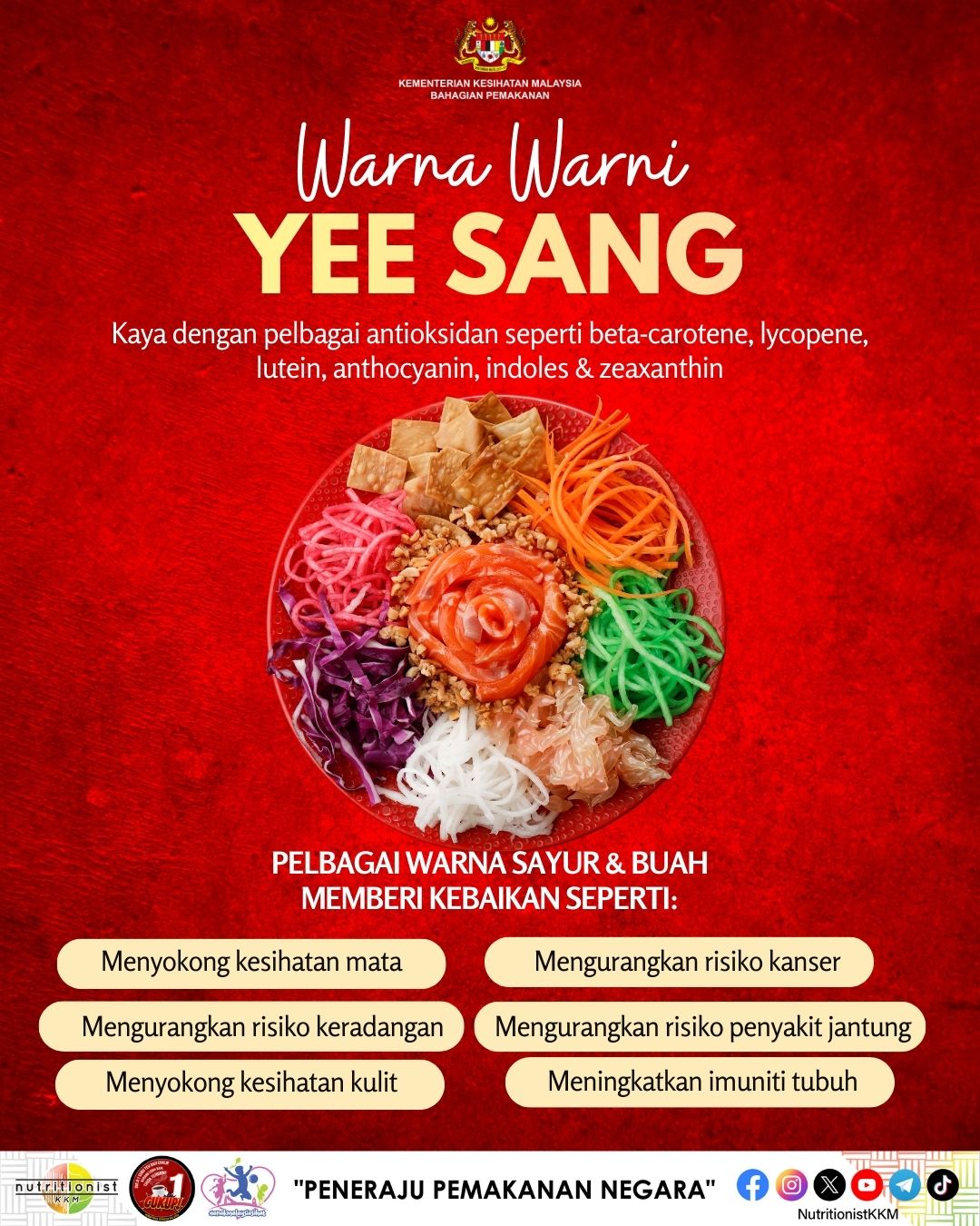 卫生部旗下的营养组面子书“Nutritionistkkm”分享贴文,鼓励国人用色彩缤纷、喜庆热闹的“捞生”(lou hei)来庆祝农历新年。