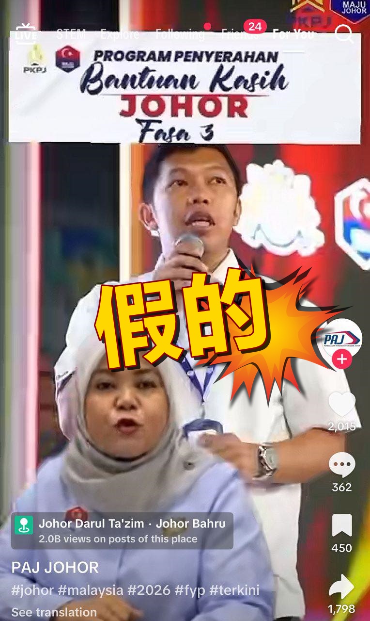 他说,警方审查发现有12个TikTok假账号,其中4个账号使用人工智能模仿行政议员的声音和面孔,宣传柔佛关爱援助,目的是欺骗公众。