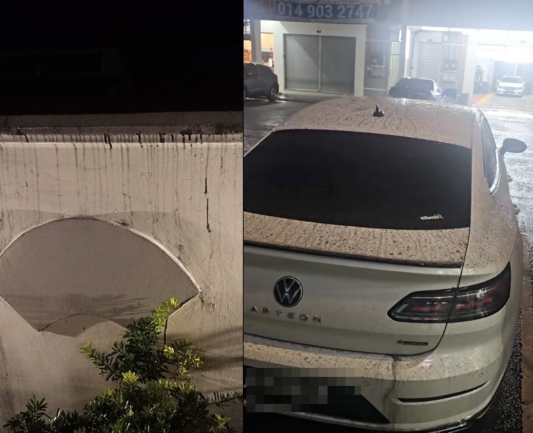 据了解,古来21哩、士乃,甚至振林山一带都出现“黑雨”,轿车和屋子外墙等都中招。