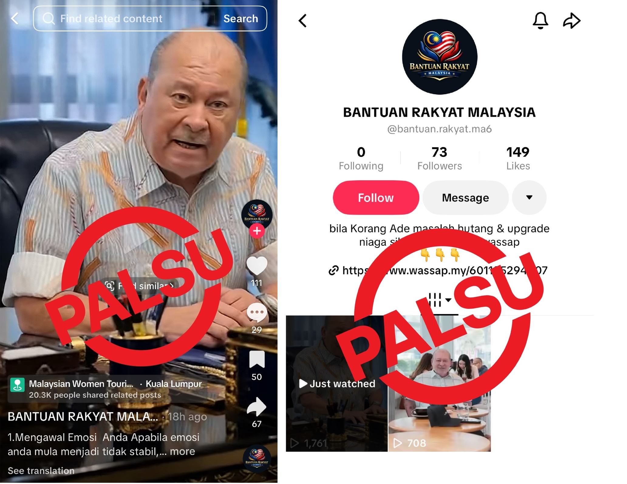 TikTok12个账号 利用AI深伪技术 模仿柔行政议员 进行关爱援助诈骗