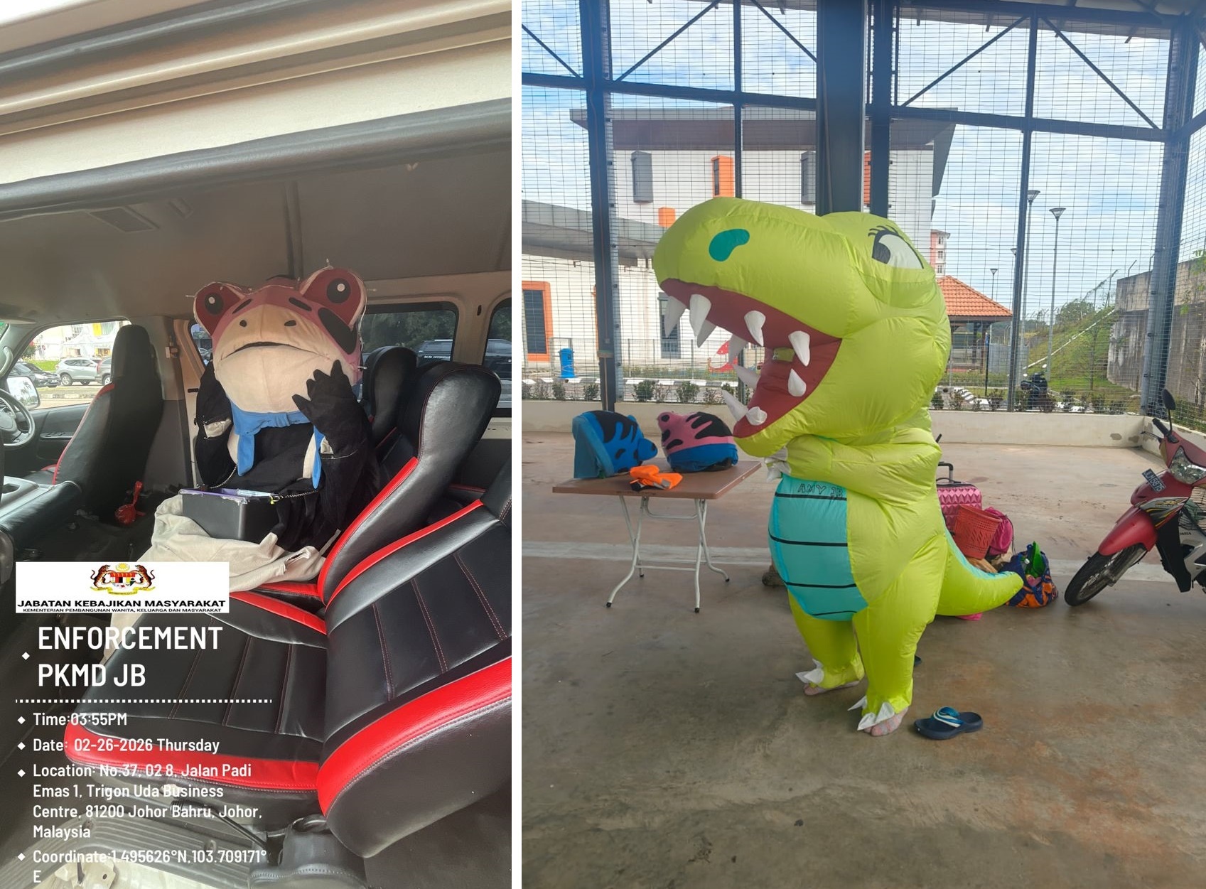 新山福利局发文告指出,由于接获投诉,因此昨日上午10时至晚上9时30分,在安莎娜广场处的红绿灯界处,以及Padi Emas 1路,展开“人偶行动”特别(OPERASI KHAS MASKOT)。