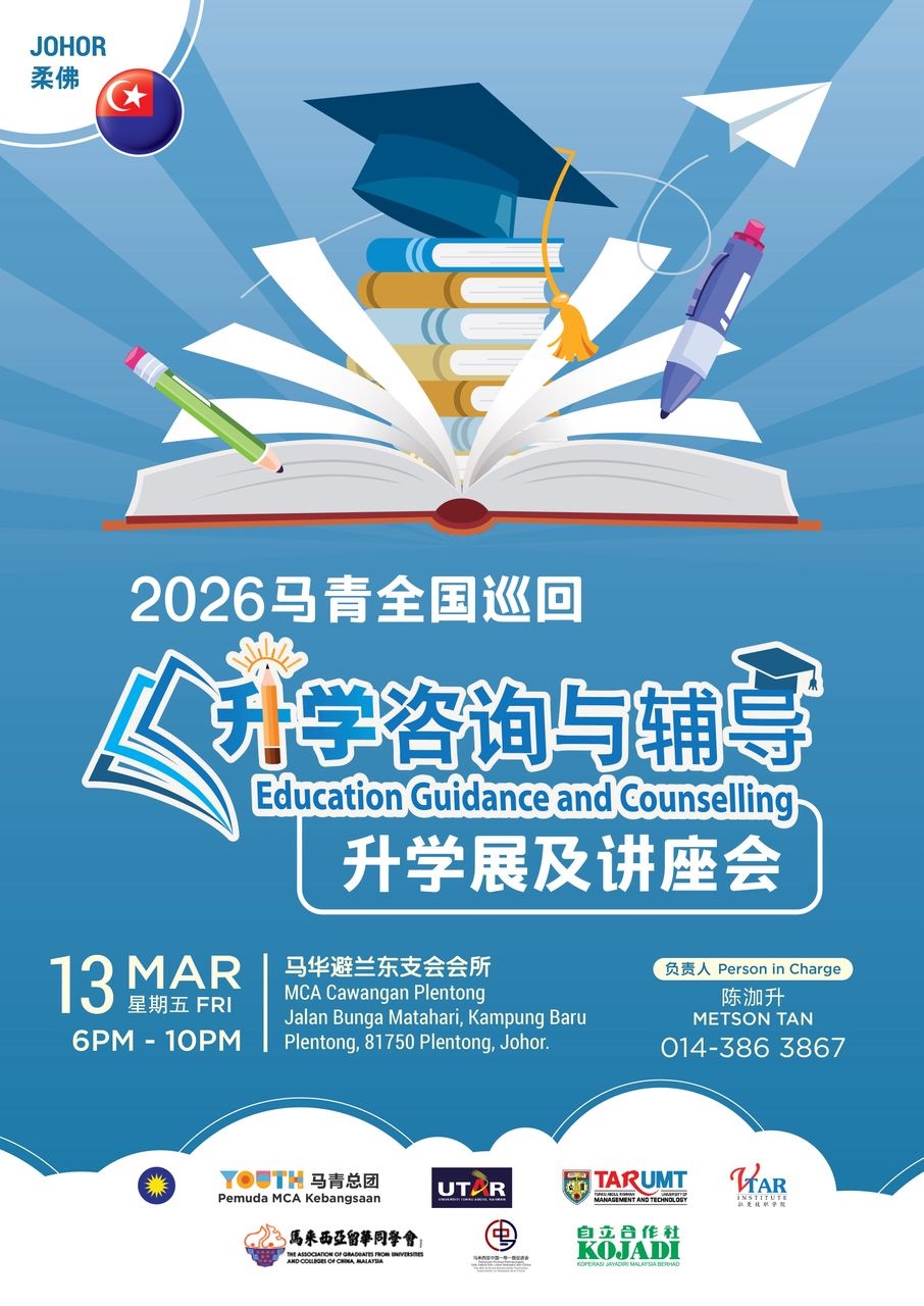 (新山28日讯)为协助应届毕业生及在籍学生更清晰规划未来升学方向,“2026马青全国巡回 · 开学咨询与辅导升学展讲座会”,柔佛站将于3月13日举行。