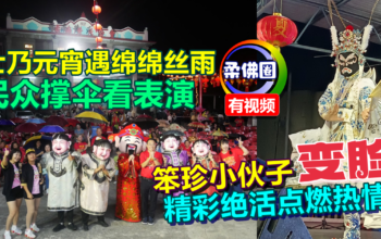 士乃元宵遇绵绵丝雨 民众撑伞看表演 笨珍小伙子“变脸” 精彩绝活点燃热情