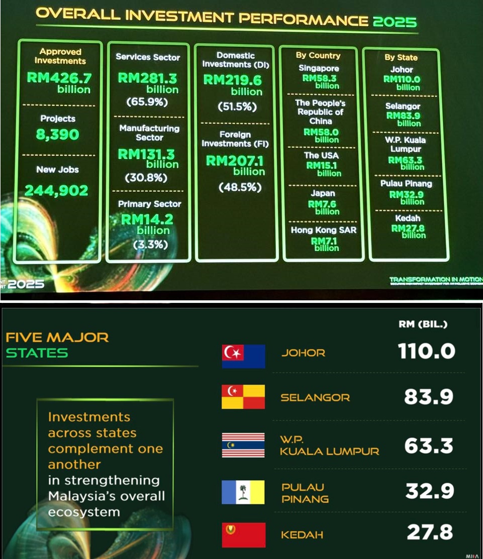 “更为重要的是,这一数字也占 2025年马来西亚全国批准投资总额的25.77%,显示柔佛在推动国家投资增长方面发挥着关键作用。”