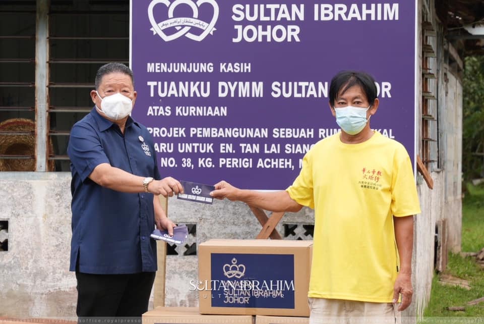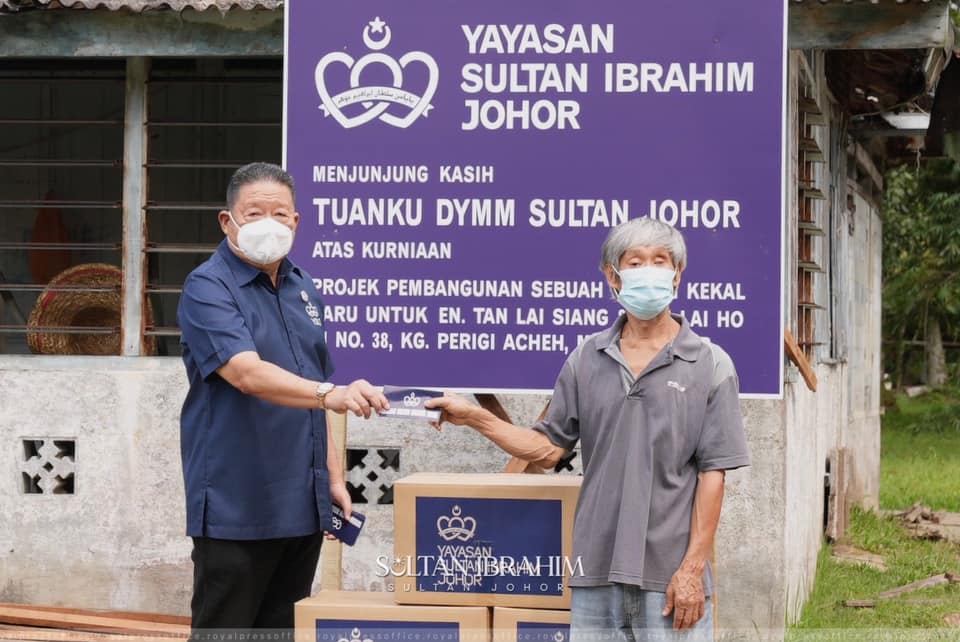 柔佛苏丹依布拉欣经由基金会协助两名上了年纪的华裔兄弟,重新建家园,让两人有避风港。