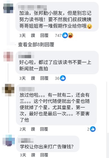 也有人借着有媒体曾形容张邦勤是“学霸”,所以,根本不用担心“学霸”接业配会影响其学业,反击批判者是“自己没才华,产生妒嫉心”。