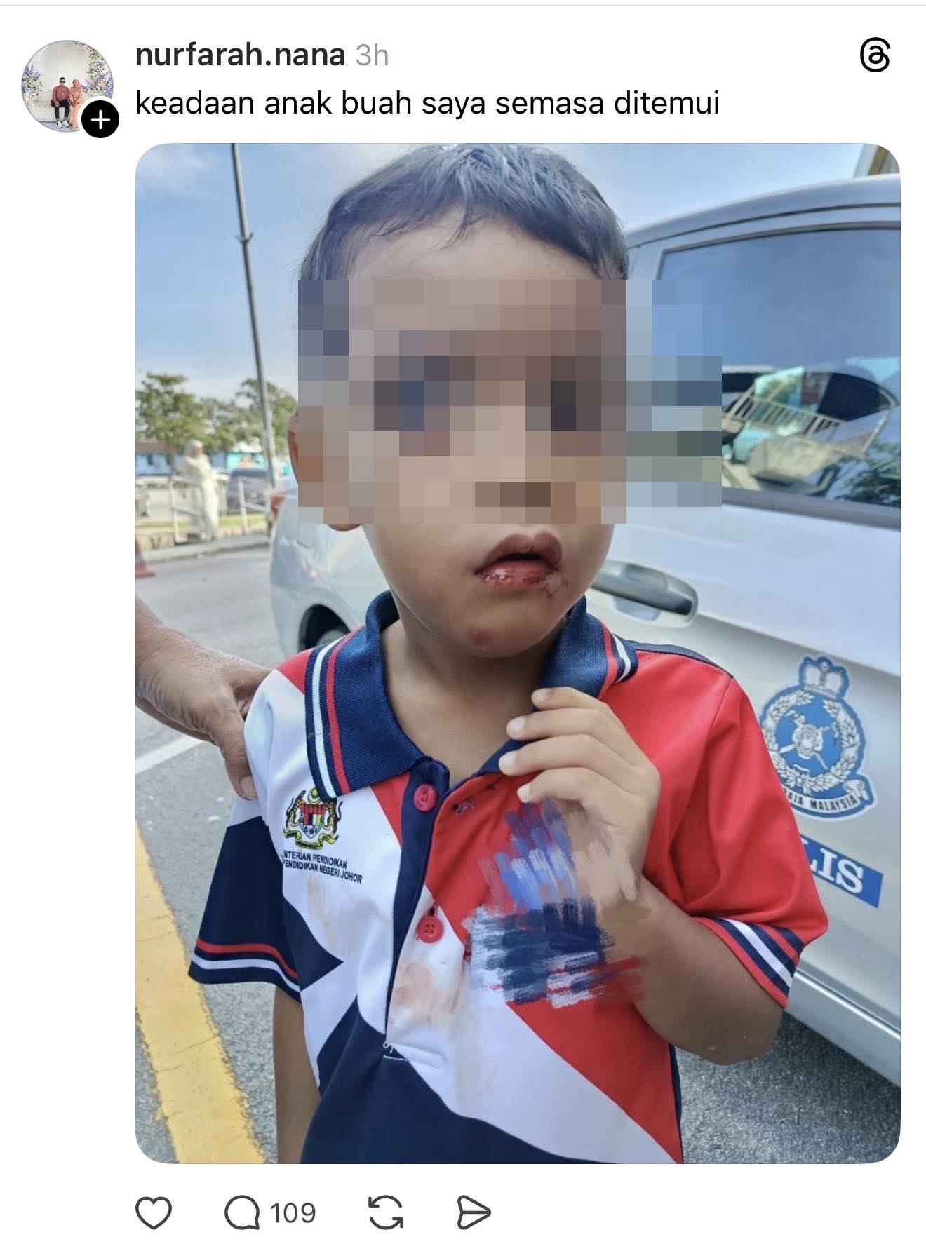 随后,7岁的学生被送往新山中央医院接受进一步治疗,并告知被校长打伤。