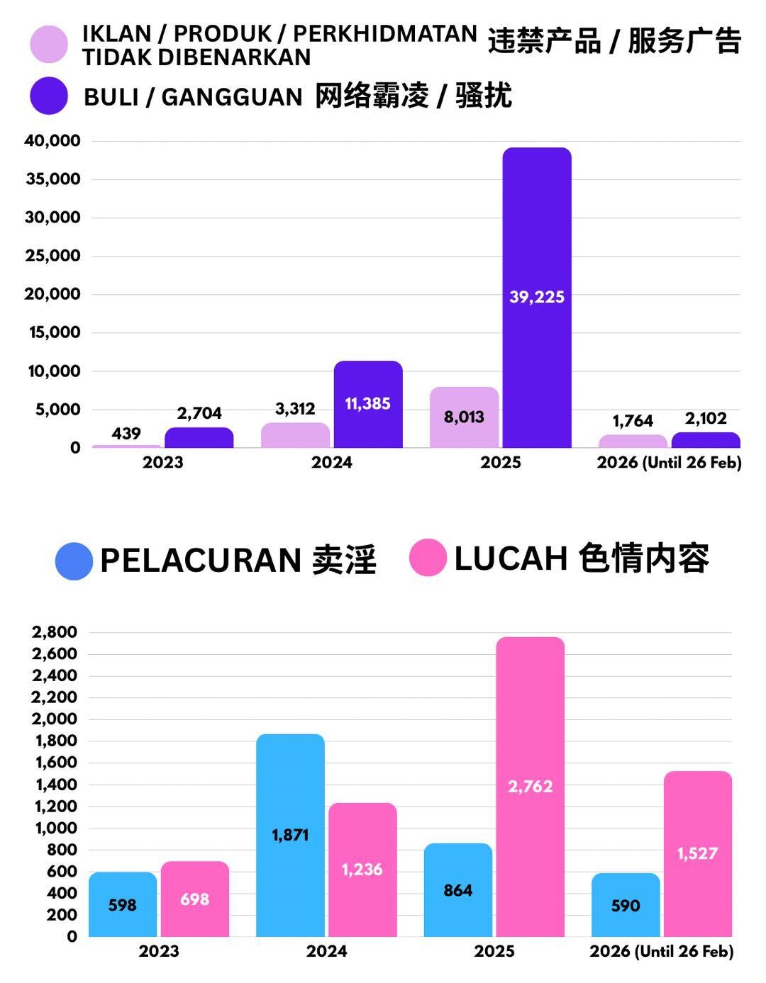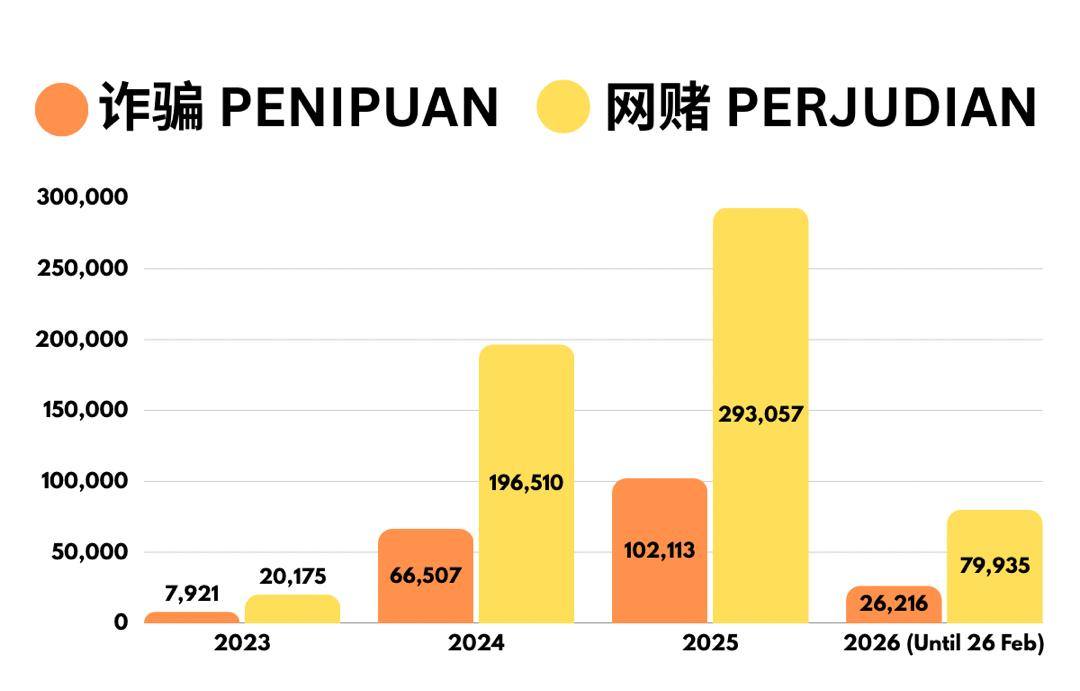 她指出,MCMC 针对诈骗的删帖要求,从2023年的7921则,一路飙升至2025年的10万2113则,今年首两个月也已累积2万6216则。