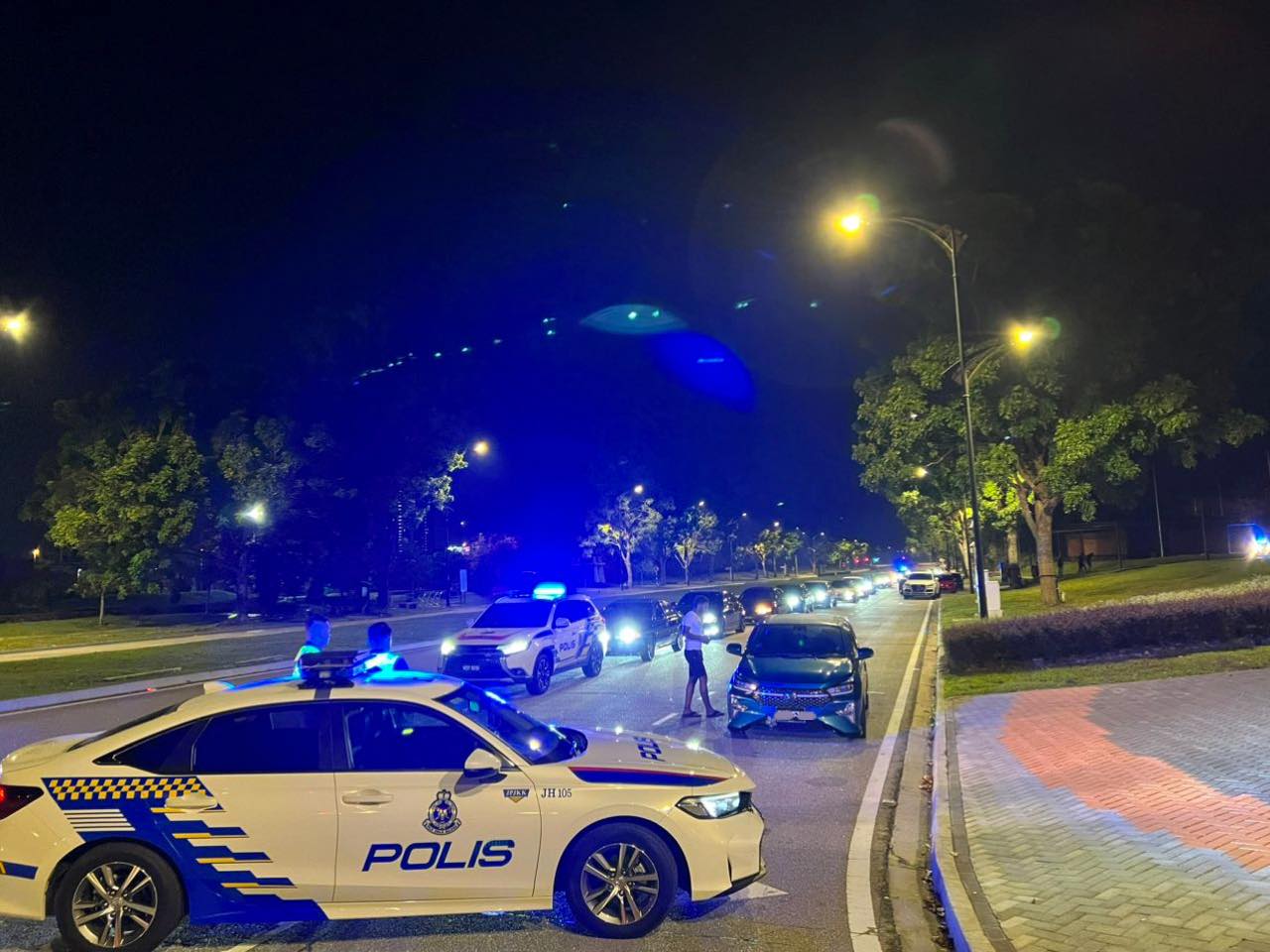 依斯干达公主城警区交通调查执法组,于昨日凌晨,在美迪尼主要道路,展开“公路流氓”行动,因为该路段被圈定为非法赛车聚集地,经常有危险驾驶活动。