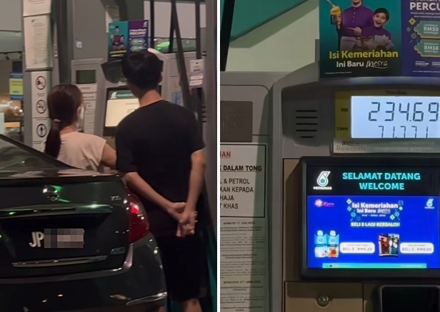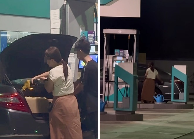 有网民在面子书举报,3月12日,晚上9时12分,在新山丽宁镇,有一对男女不仅为轿车添油,还带着容器添油,两人相信担心行为被察觉,还更换油泵添油。