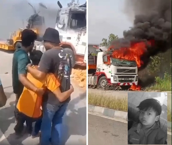 (新山27日讯)父亲载着4岁儿到工业区办工,岂知罗厘突然着火,坐在车内的4岁男童活活被烧死。