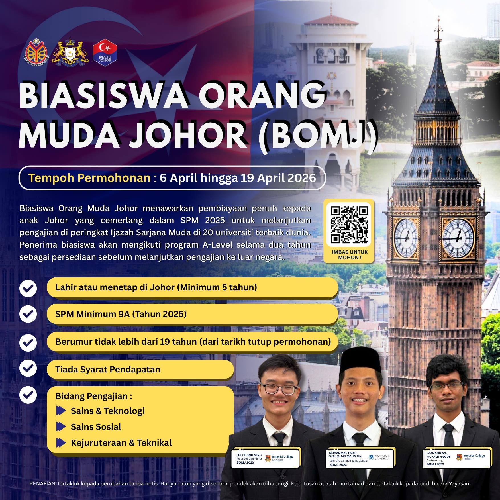 柔佛教育基金会(YPJ)宣布,开放柔佛青年奖学金(BOMJ)让学业卓越柔佛学子申请。