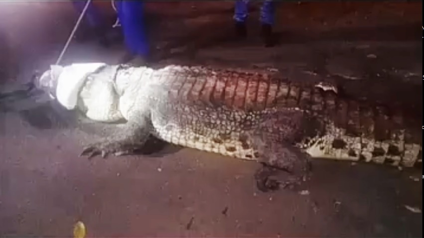 这只鳄鱼身长近5公尺,相信因旱季受困于干涸的水沟。
