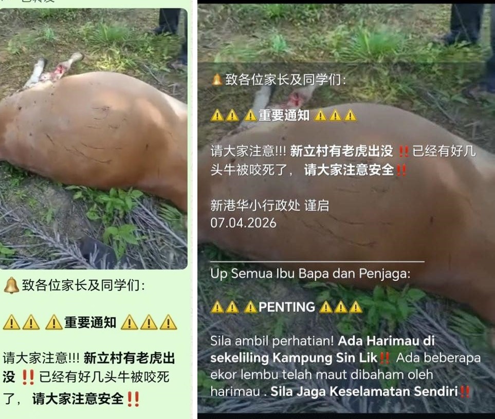 (峇株巴辖7日讯)永平新立村传出老虎咬死家畜,校方通告引起民慌。永平州议员林添顺人辟谣,流传照片是早前加亨垦殖区事件,并非在永平发生。
