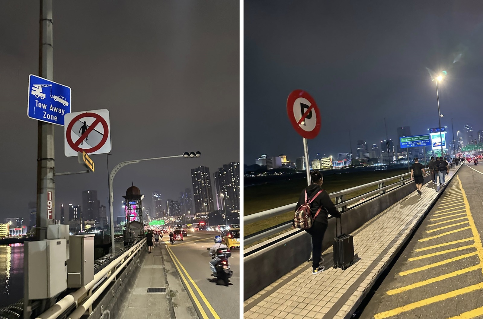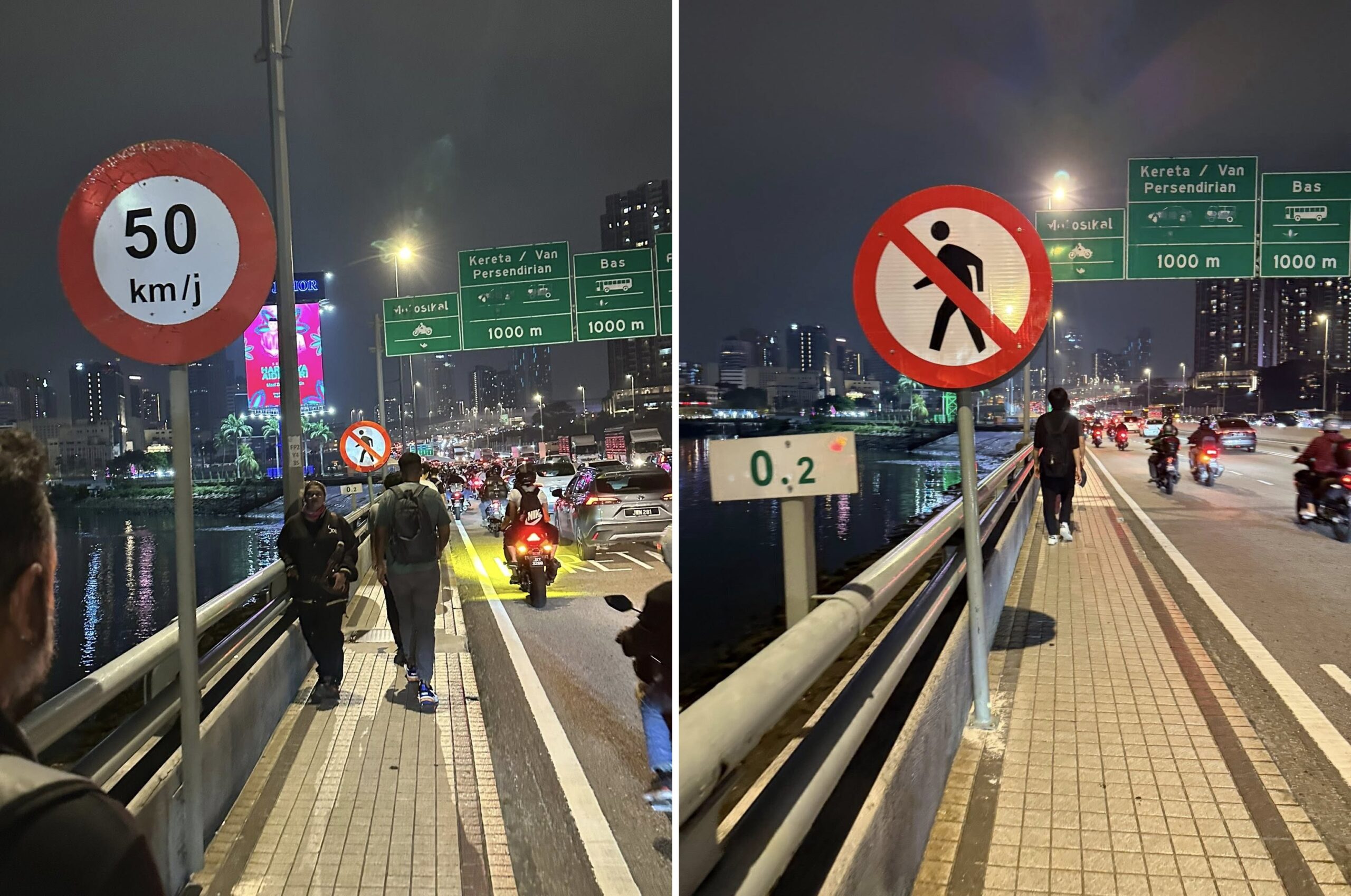 2017年时,新山关卡处更设立了牌子,说明BSI朝往兀兰的柔佛长堤,是禁止步行区域,任何交通意外发生,后果自负。