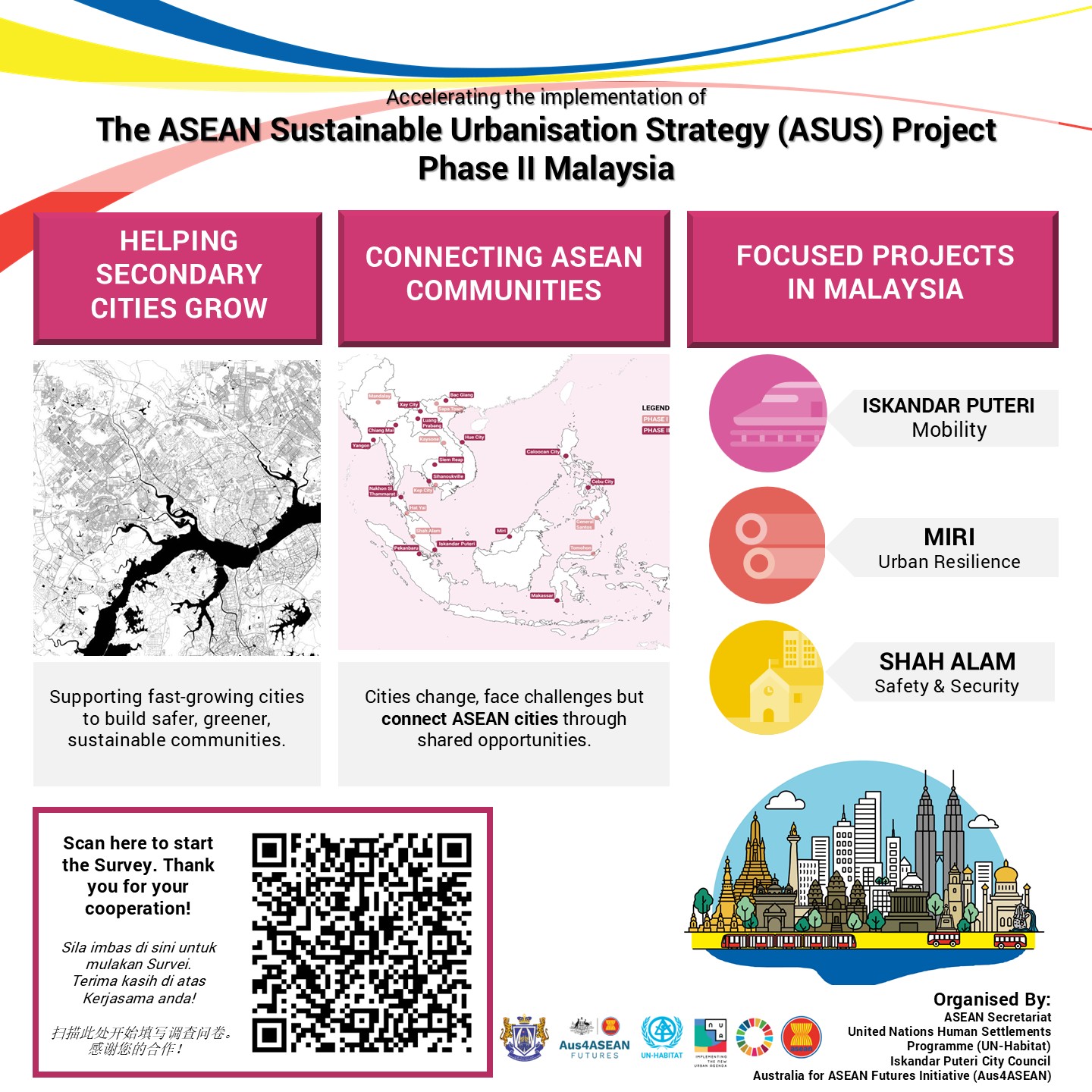 这是东盟可持续城市化战略(ASUS)第二阶段在马来西亚的项目。此次民调旨在为武吉英达(Bukit Indah)制定一份完善的“主动出行总体规划”(Active Mobility Master Plan)。