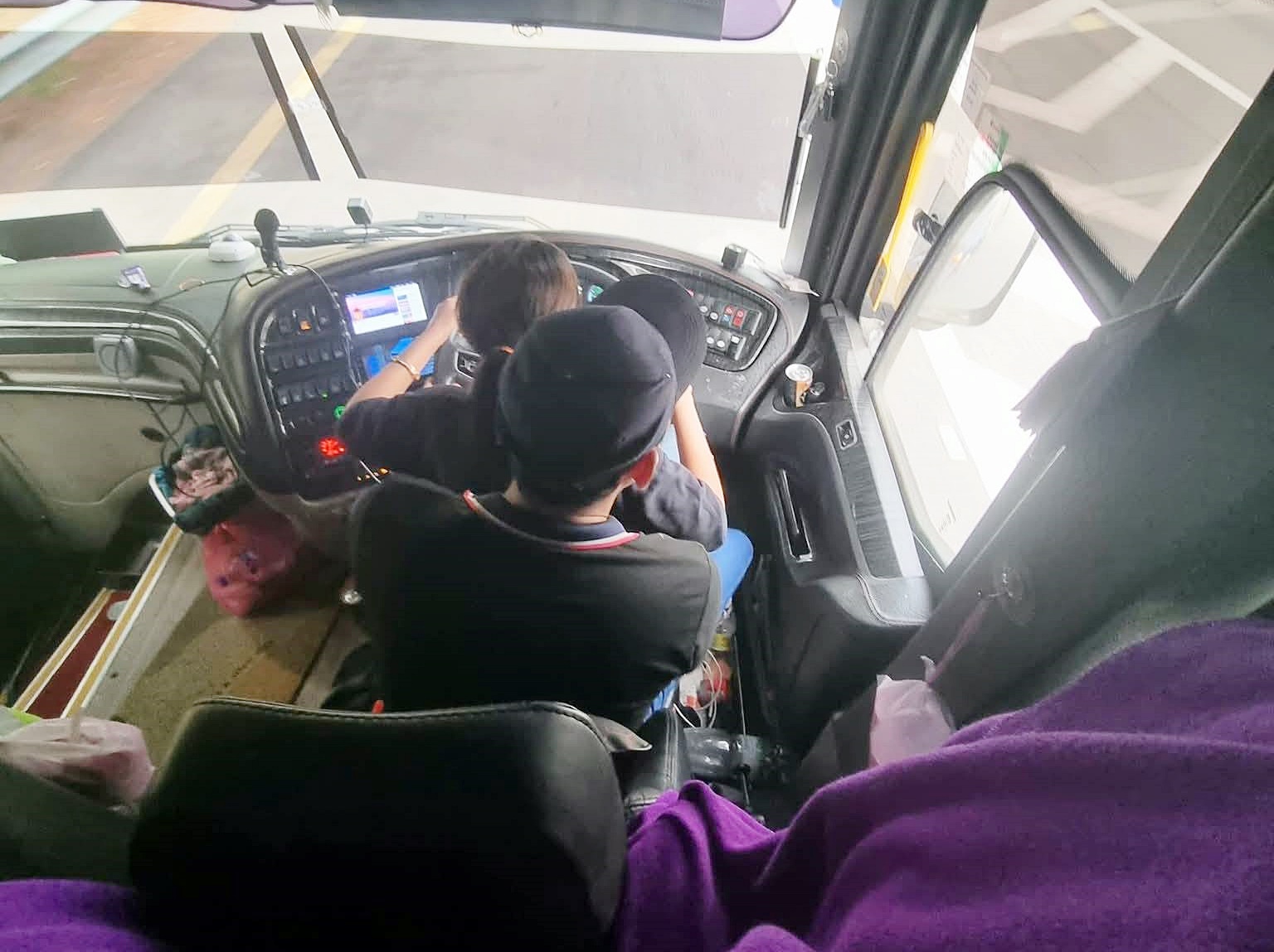 (古来12日讯)你浓我浓,两人一起开巴士?!网络疯传一辆长途巴士,巴士司机疑抱着一名女子,并让女子操控驾驶盘,危险驾驶行为引热议。