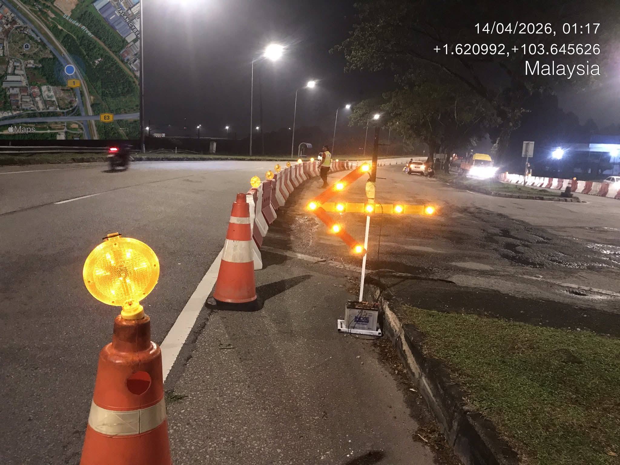 (古来14日讯)士乃大道局前U转往新山方向的路口,进行道路重铺工程,预计需要到5月1日才能重开。